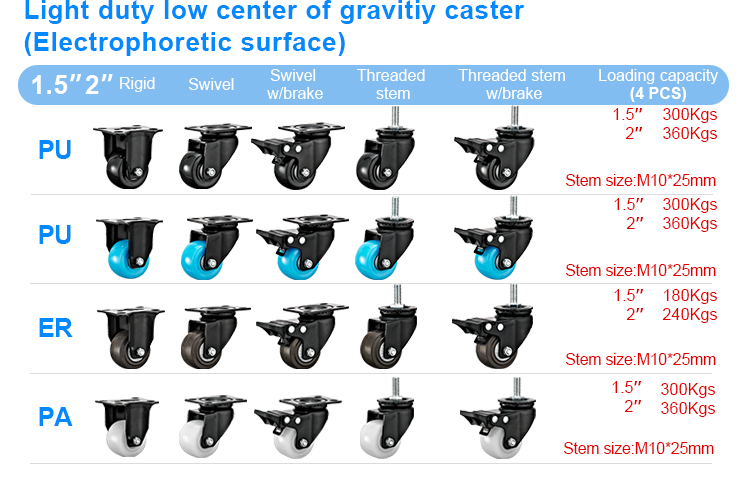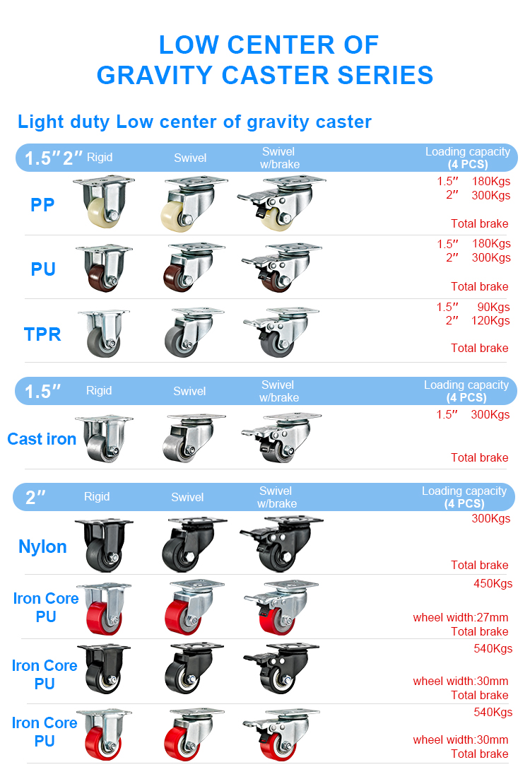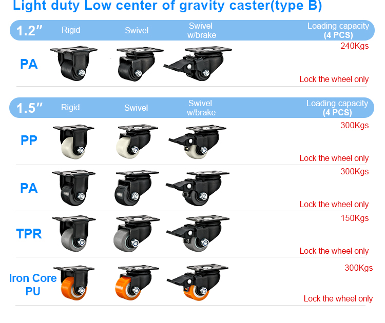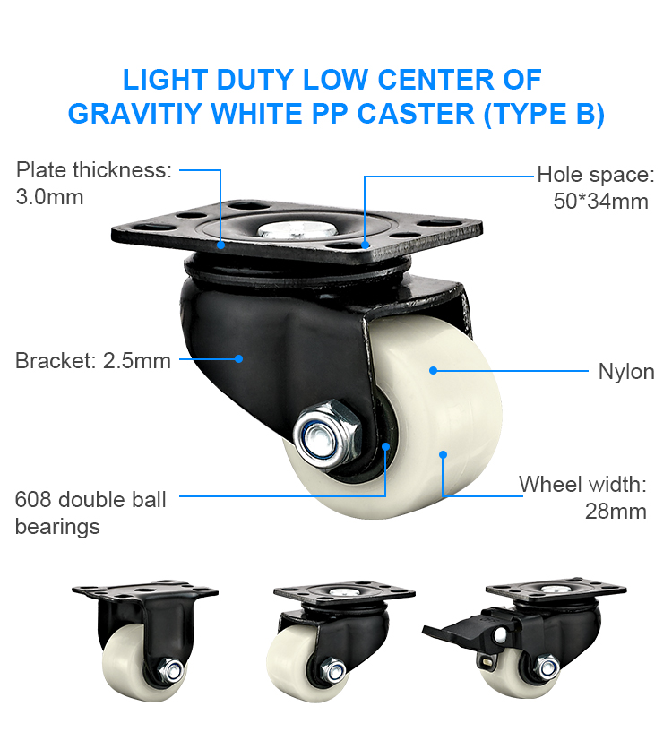 Light duty Low center of gravity white PP caster(Type B)