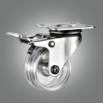Stainless Steel Caster Series - Light Duty Transparent PC Top Plate Caster - Total Lock