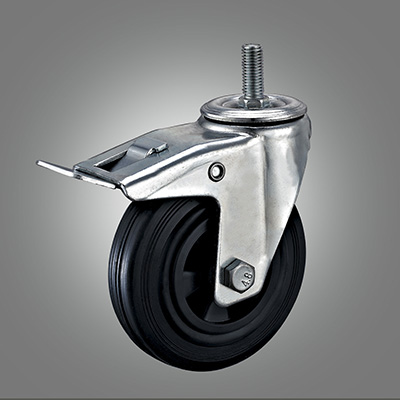Industrial Caster Series - Rubber (PP Core) Threaded Stem Caster - Total Lock
