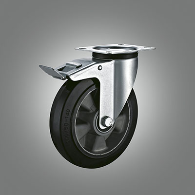 Industrial Caster Series - Rubber (Aluminium Core) Top Plate Caster - Total Lock