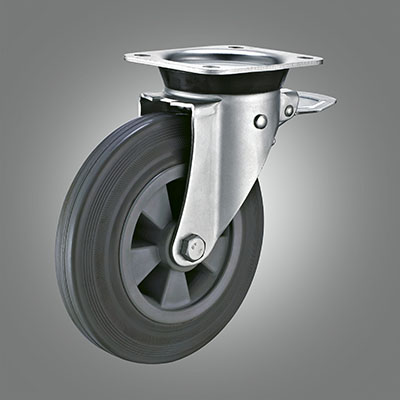 Trash Bin Caster Series - Gray Rubber (PP Core) - Total Lock
