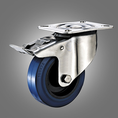 Stainless Steel Caster Series - European Industrial Elastic Rubber Top Plate Caster - Total Lock
