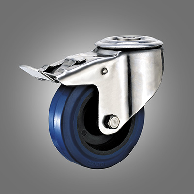 Stainless Steel Caster Series - European Industrial Elastic Rubber Hollow Rivet Caster - Total Lock