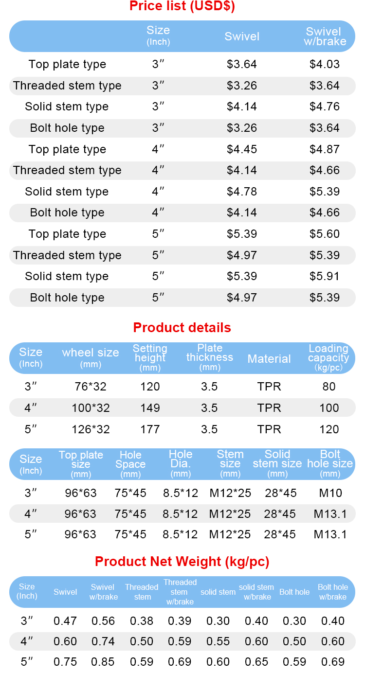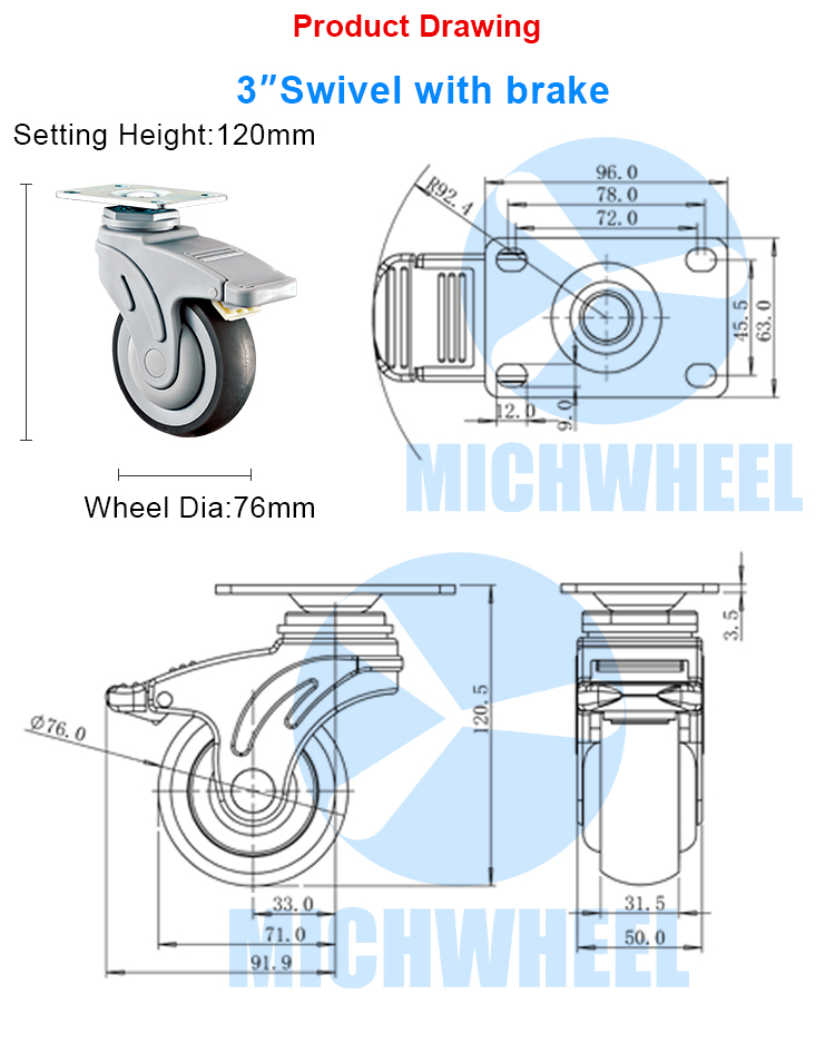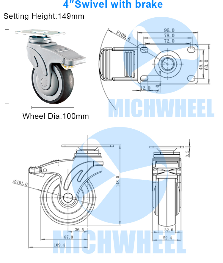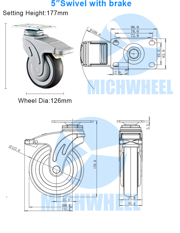 High-Performance Medical Plate Caster 5 in Wheel Dia.type A