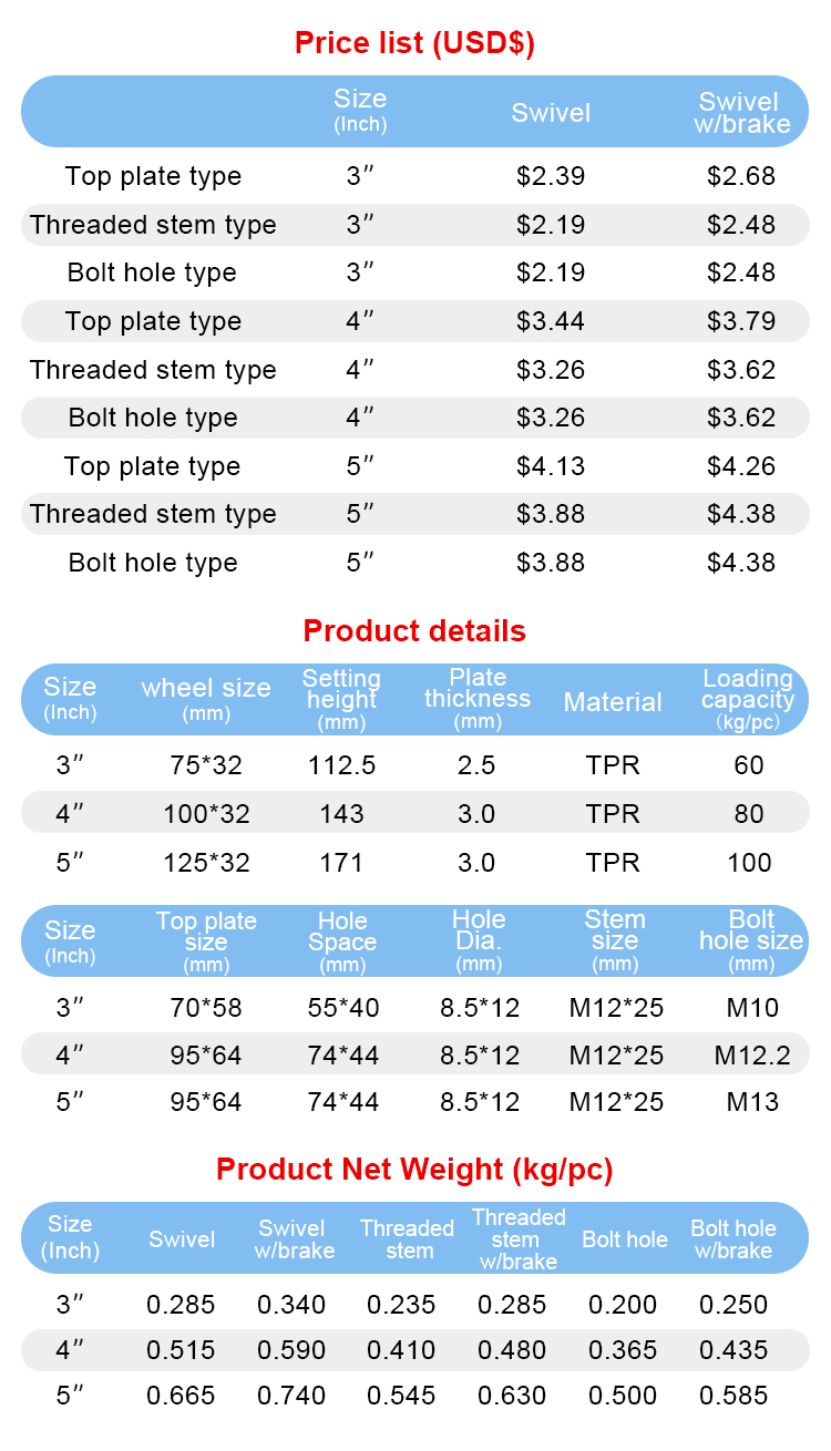 It just shows standard casters in on-line MICHWHEEL shop, other wide variety of casters are available in MICHWHEEL factory, if you do not find information you need, please contact us directly.