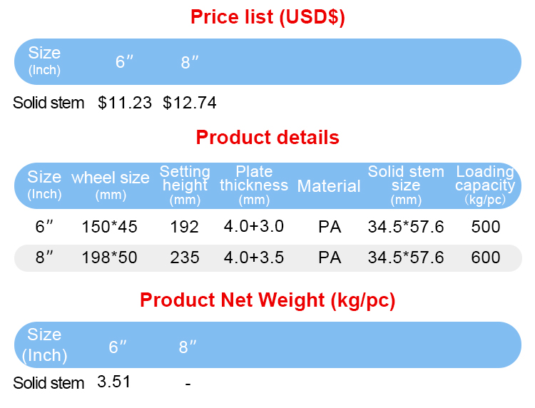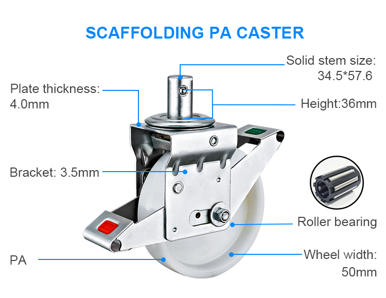 200X50mm solid stem Scaffolding PA caster