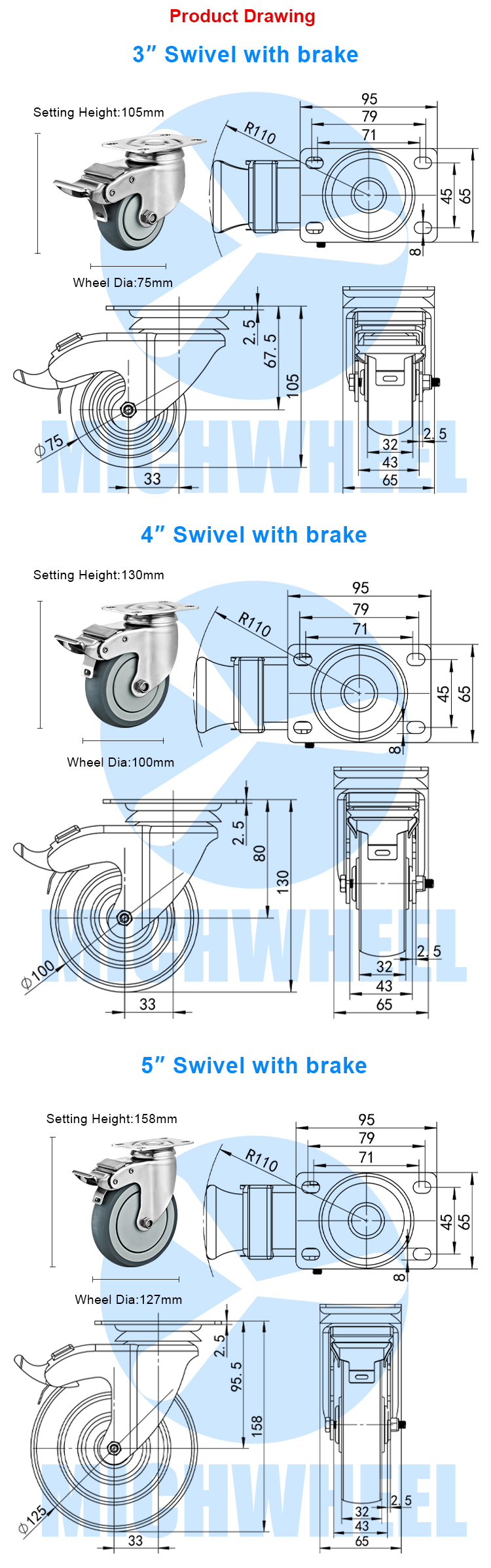 #304 stainless steel housing with double steel ball raceway in swivel head