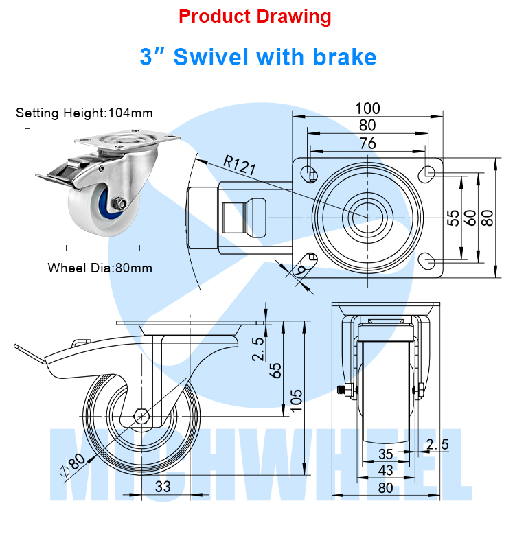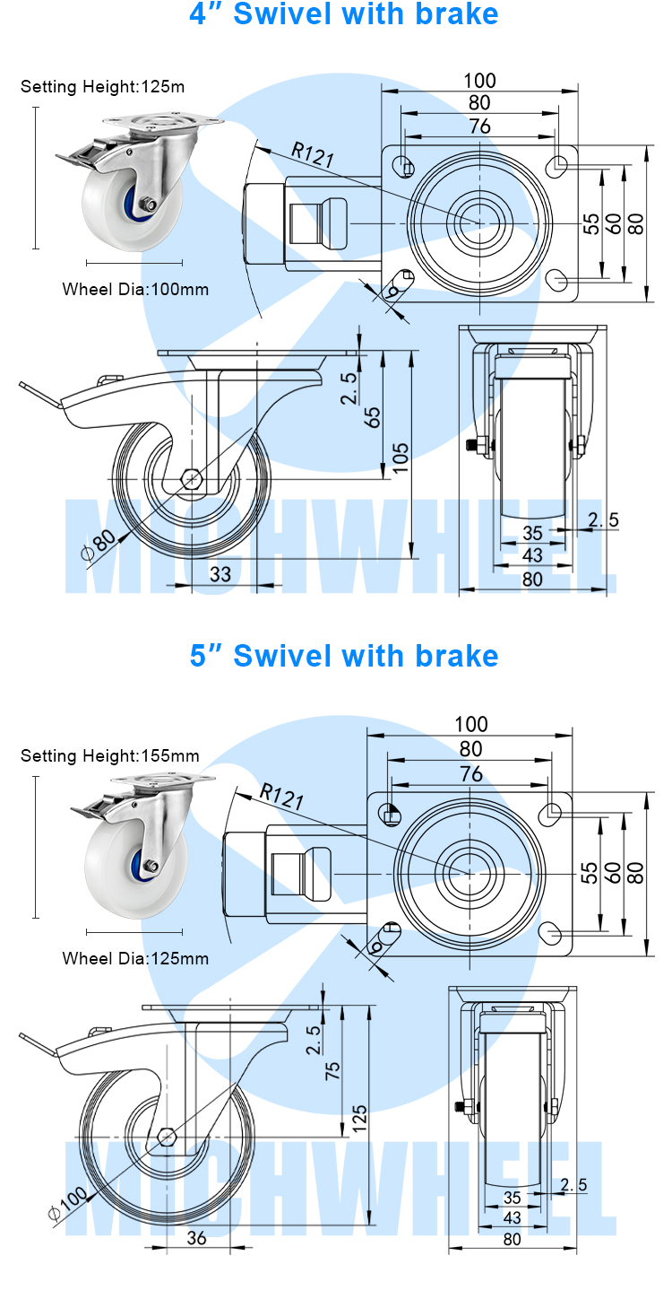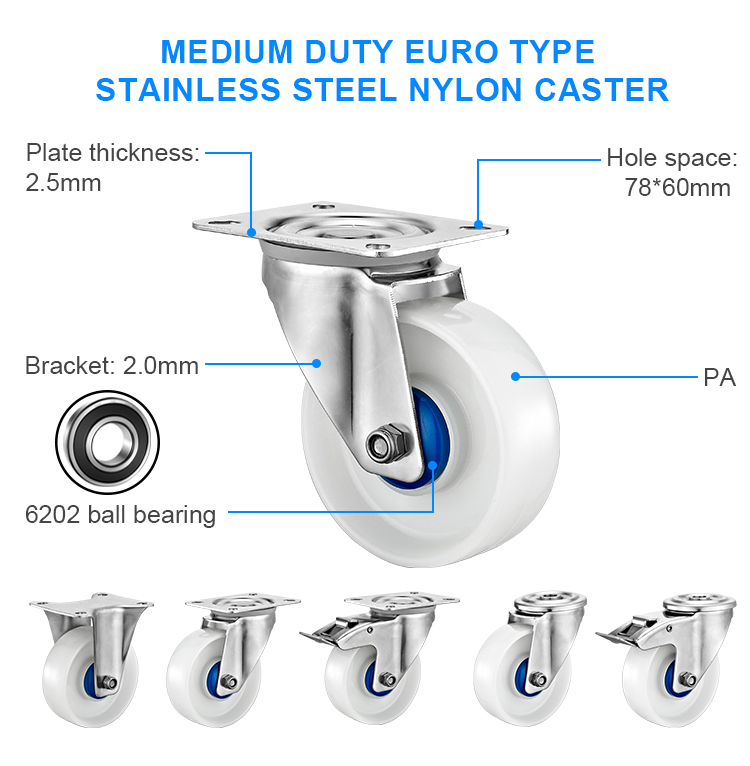 Medium duty euro type stainless steel nylon caster
