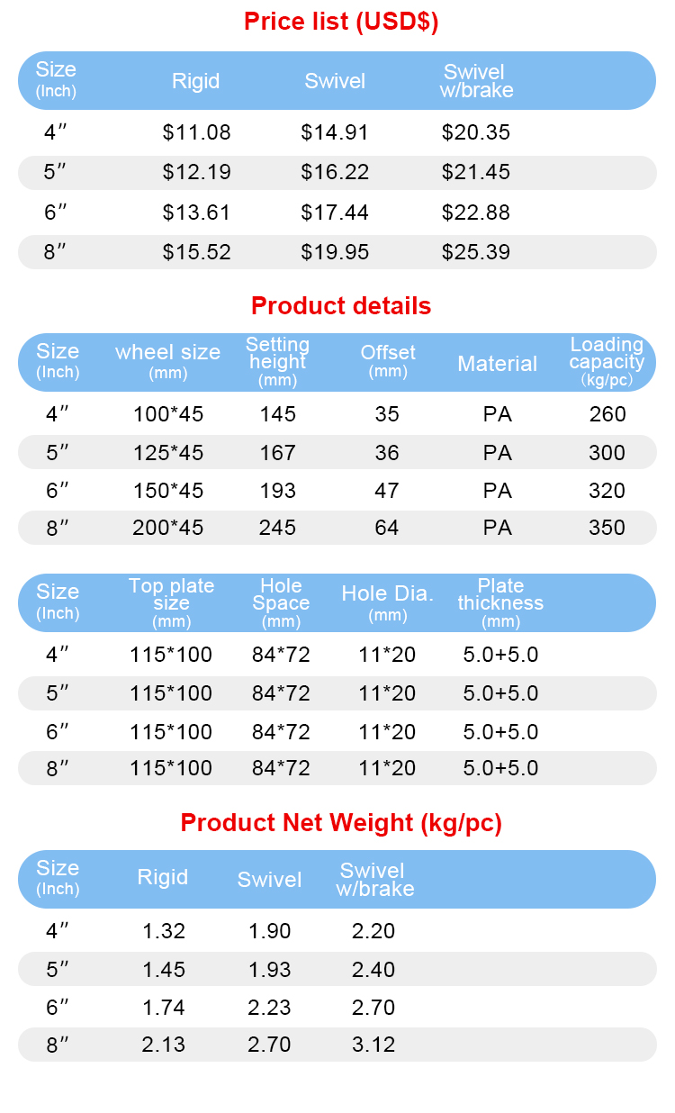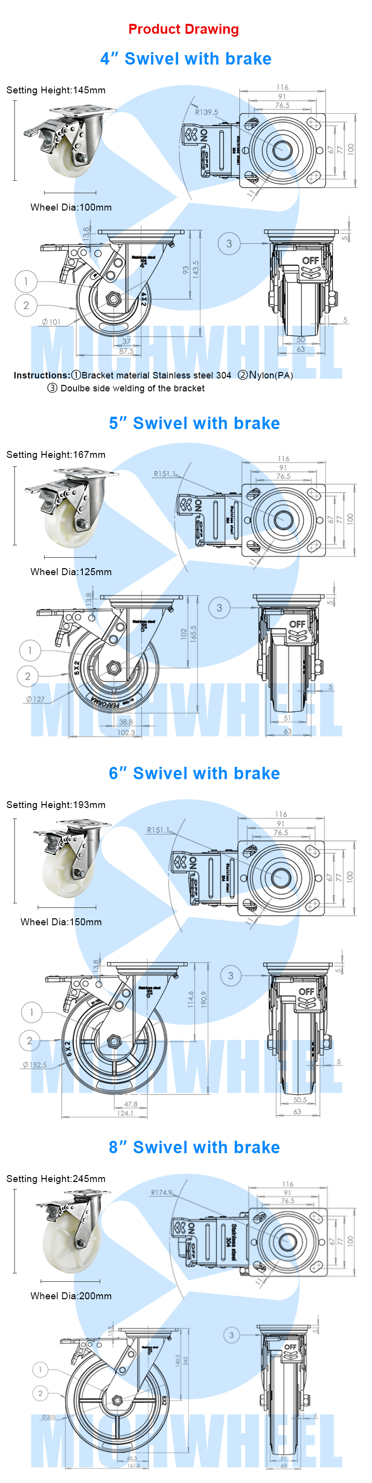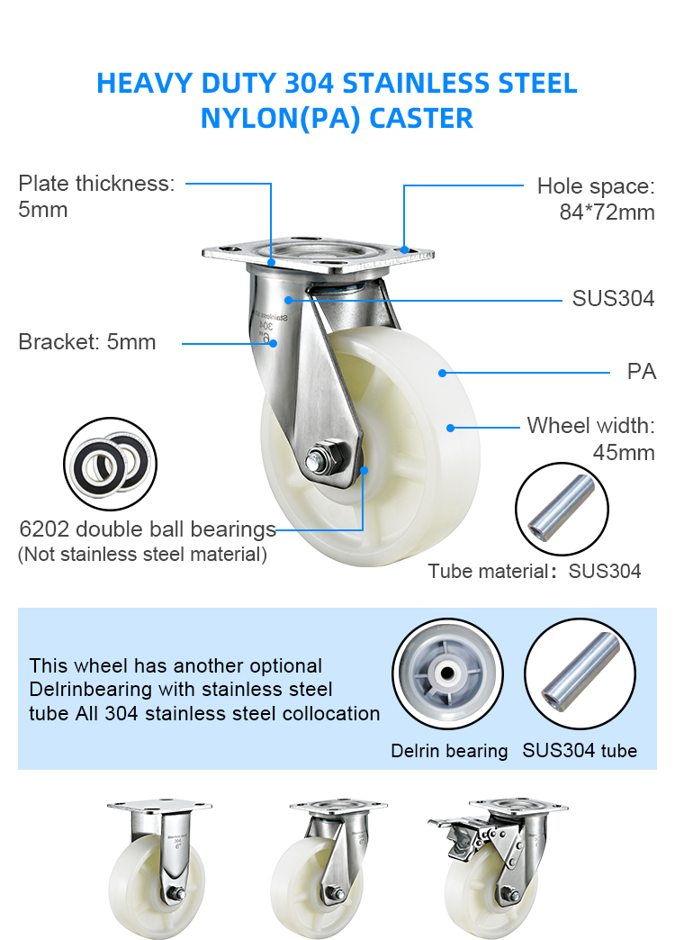 Heavy duty 304 stainless steel PA caster