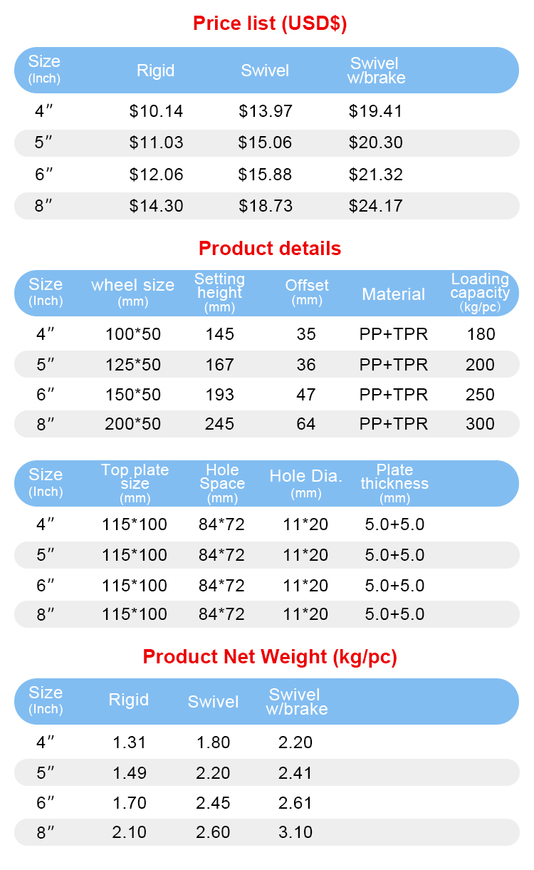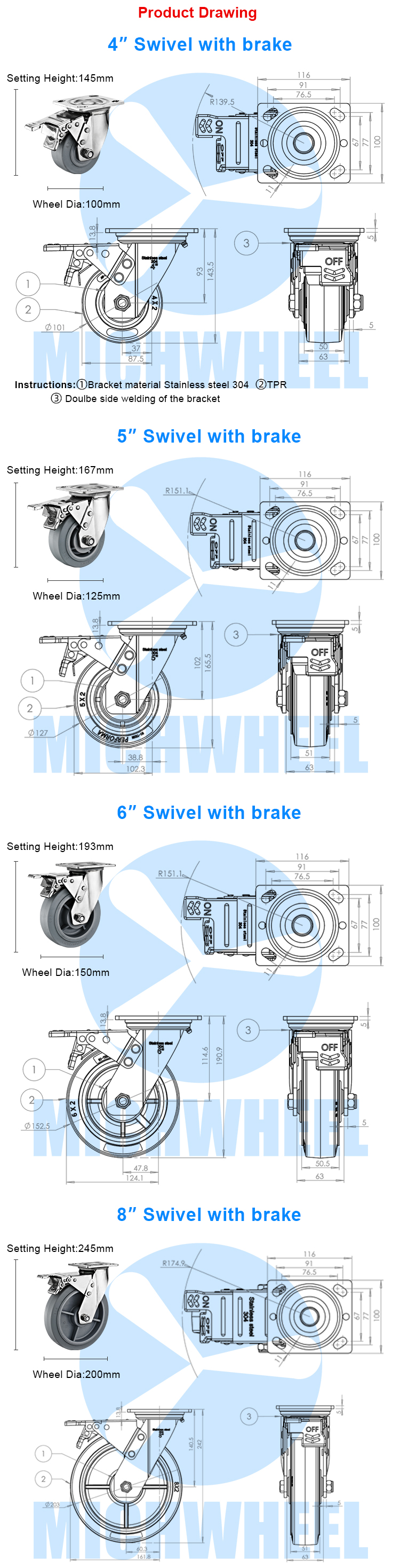 Heavy duty 304 stainless steel TPR caster