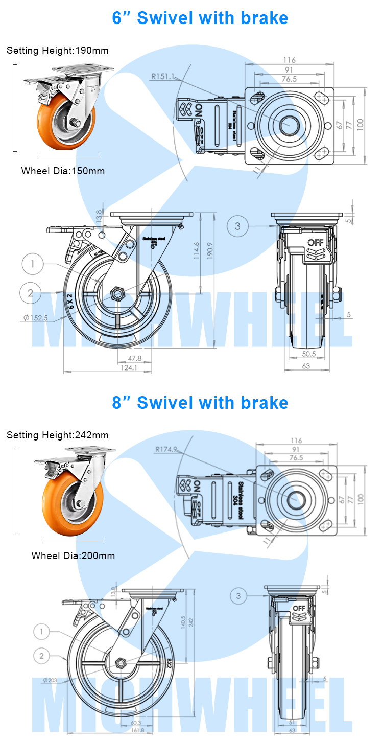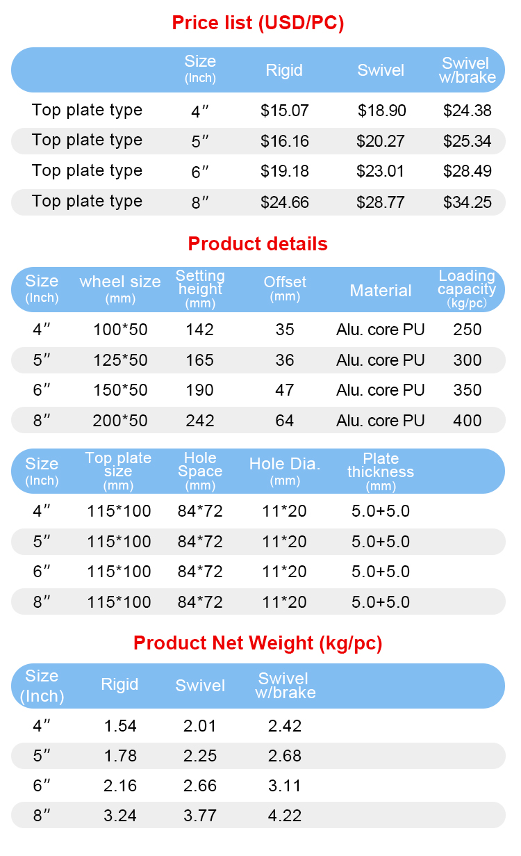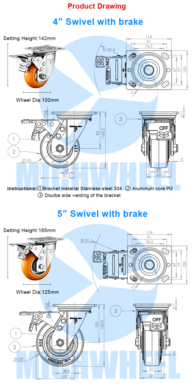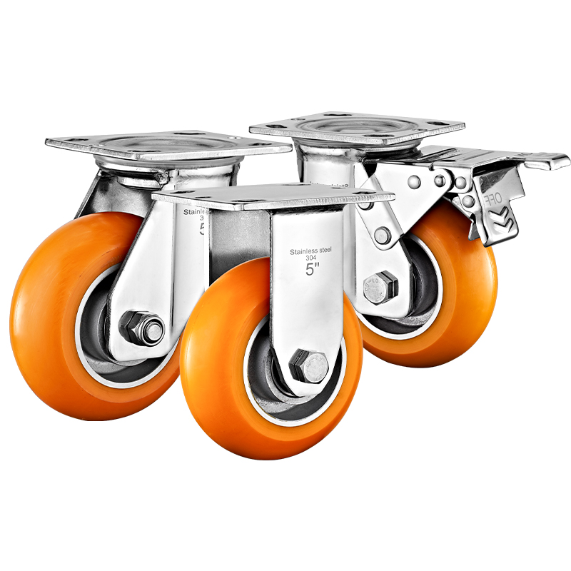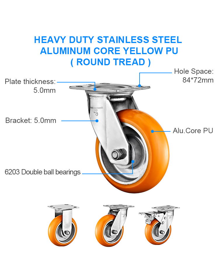Heavy duty stainless steel aluminum core yellow PU caster(Round tread)