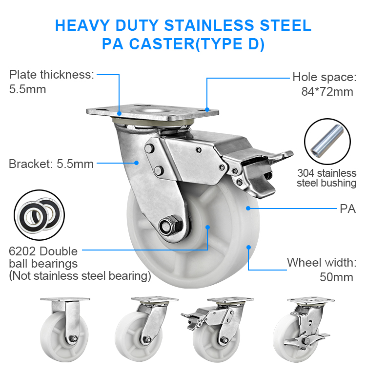#304 stainless steel housing with double steel ball raceway in swivel head