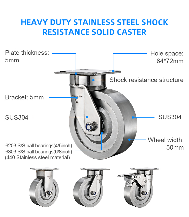 #304 stainless steel housing with double steel ball raceway in swivel head