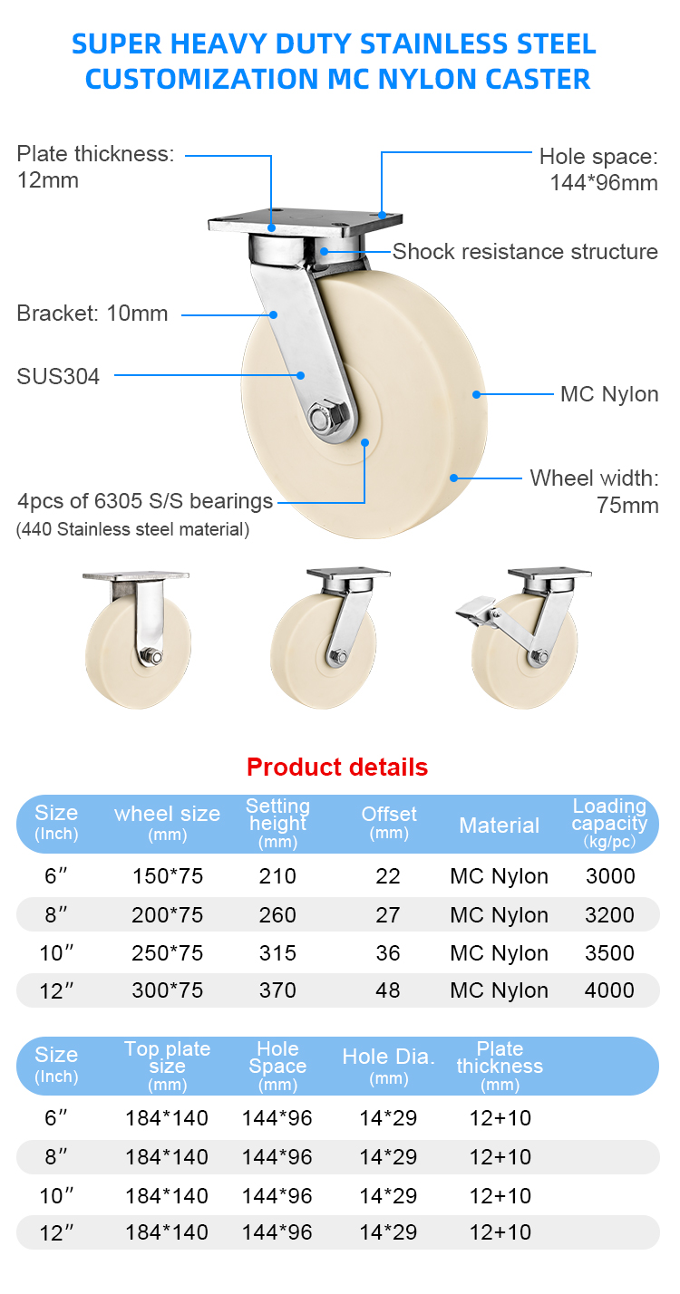 #304 stainless steel housing with double steel ball raceway in swivel head