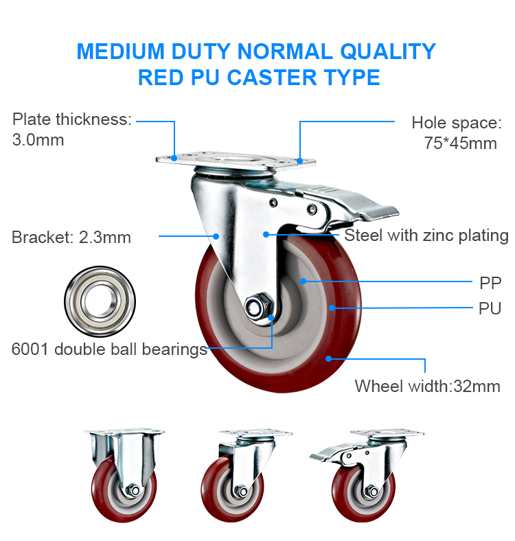 Zinc-plated pressed steel housing with double steel ball raceway in swivel head