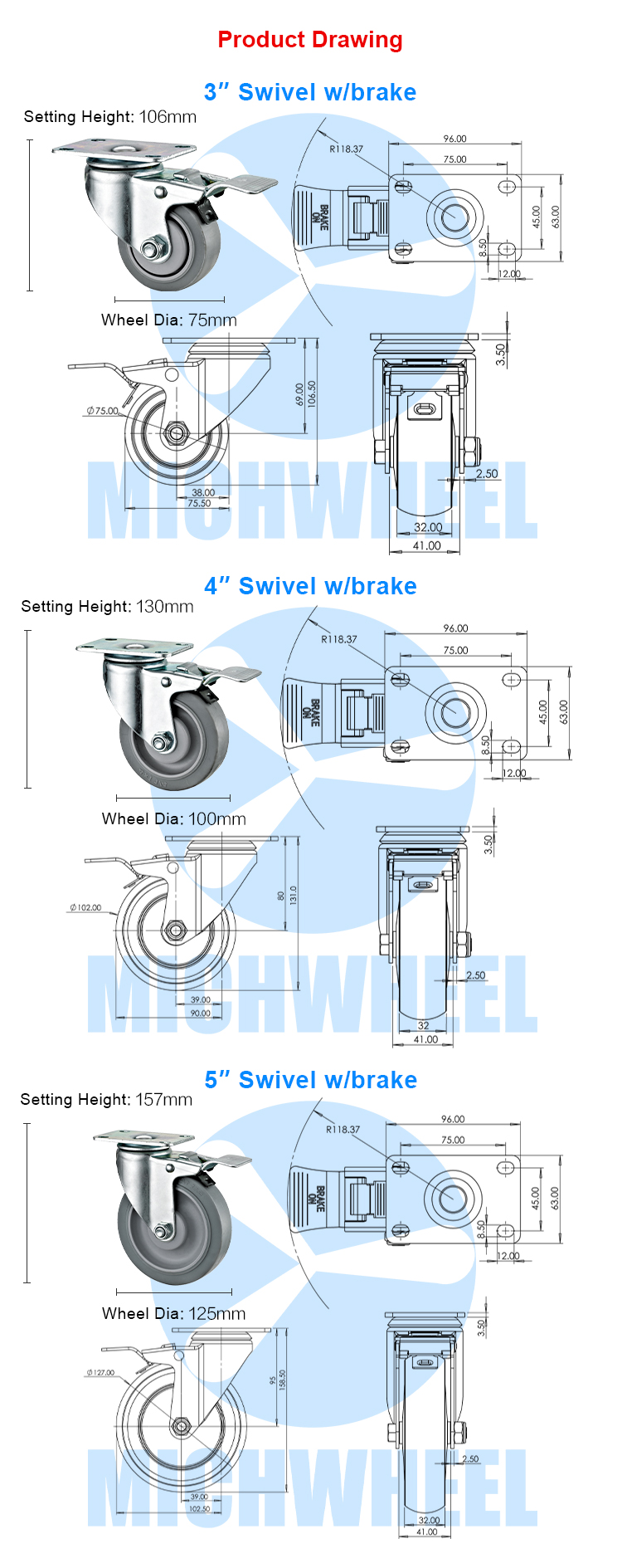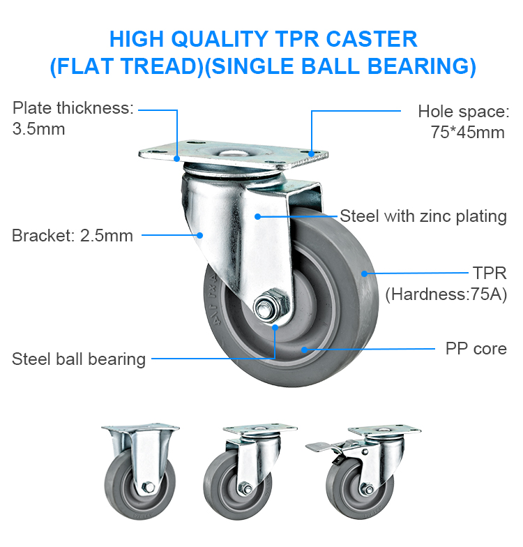 Zinc-plated pressed steel housing with double steel ball raceway in swivel head