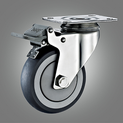 Stainless Steel Caster Series - Medium Duty TPR (Round) Top Plate Caster - Total Lock