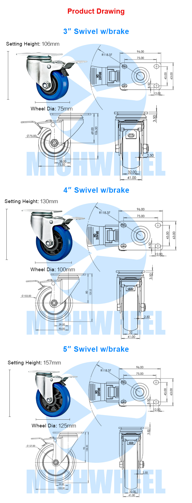 Zinc-plated pressed steel housing with double steel ball raceway in swivel head
