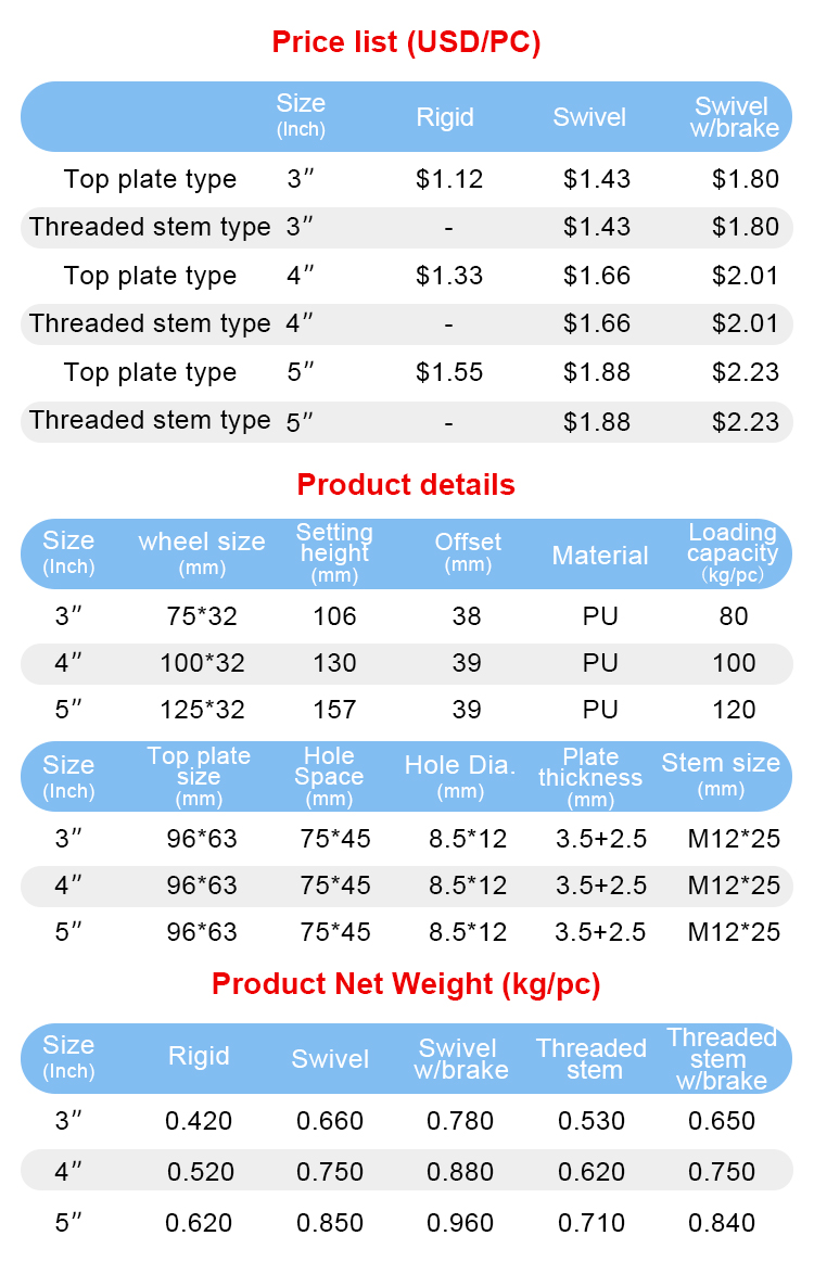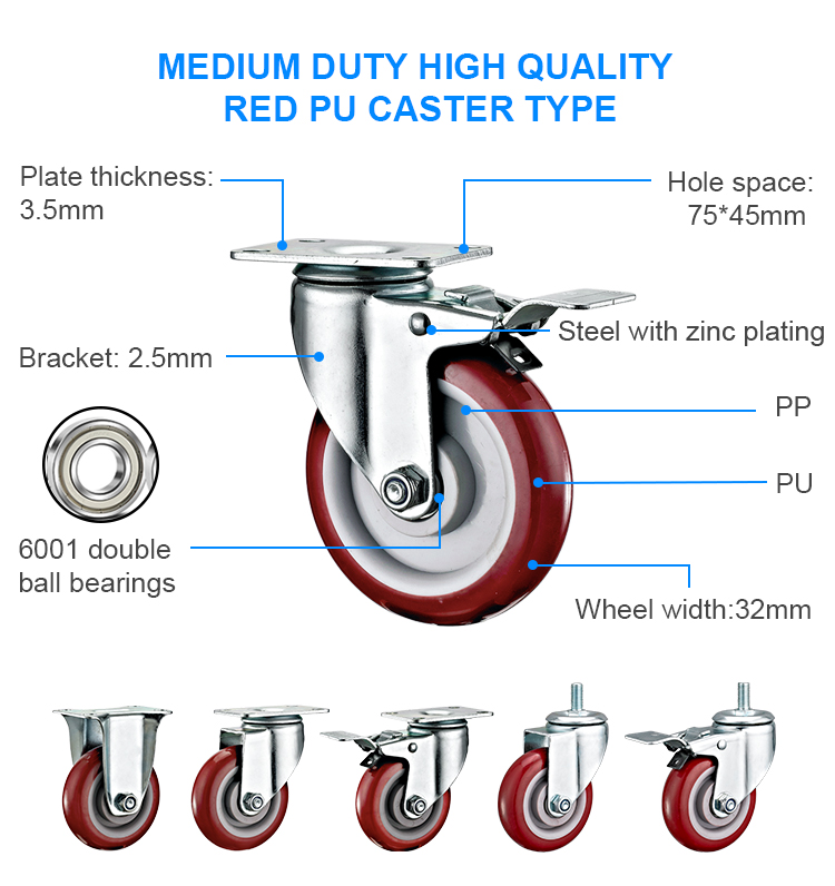 Medium duty PU/polyurethane caster(Standard model)