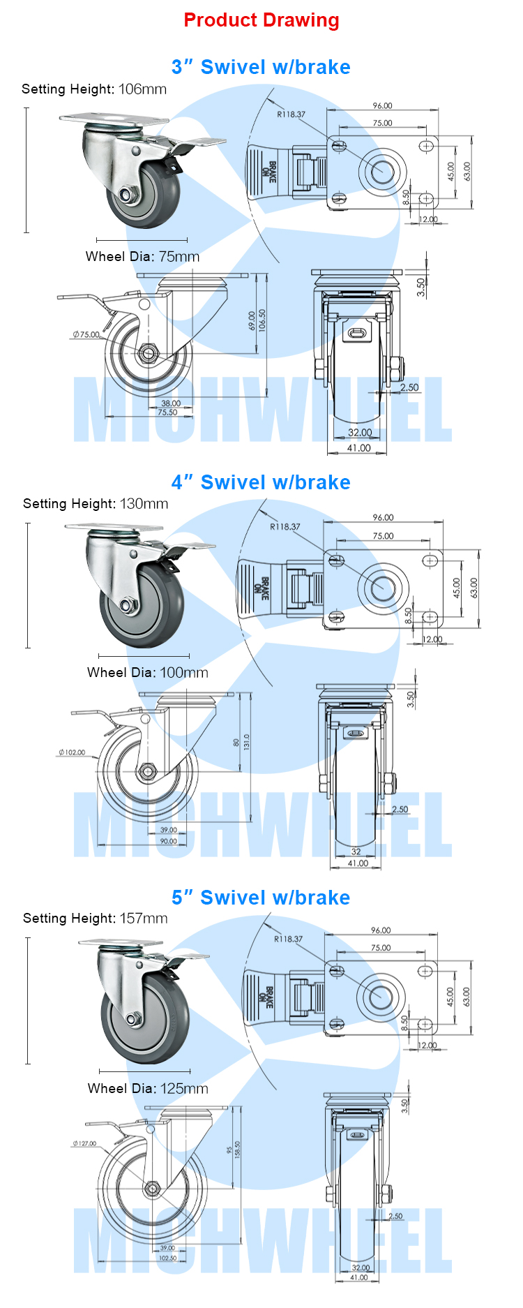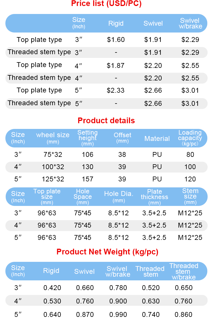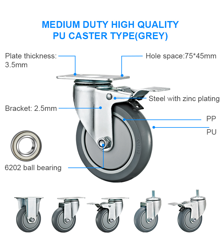 Medium duty PU/polyurethane caster(Standard model)