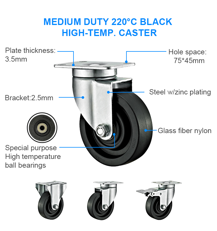 Zinc-plated pressed steel housing with double steel ball raceway in swivel head
