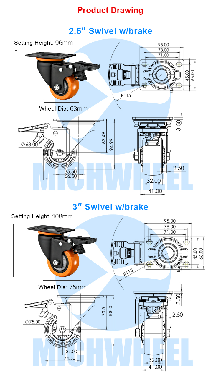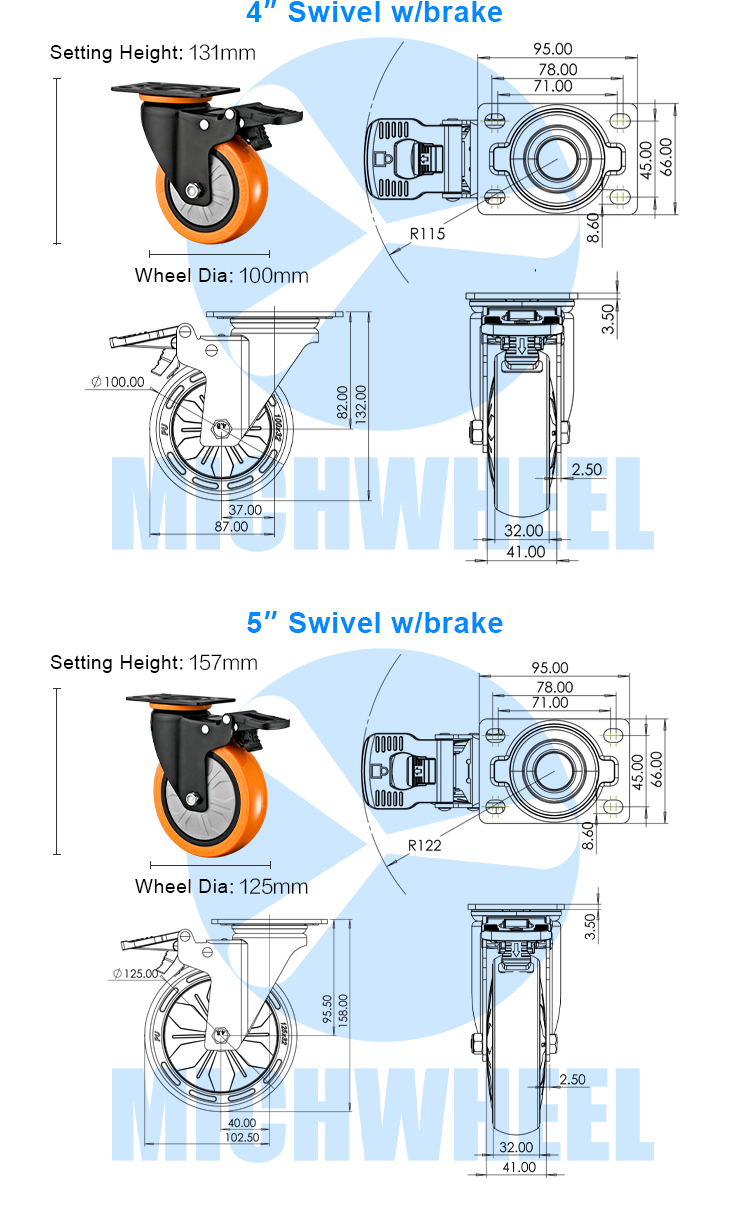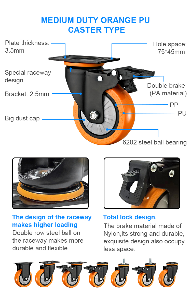 Medium duty orange PU caster type