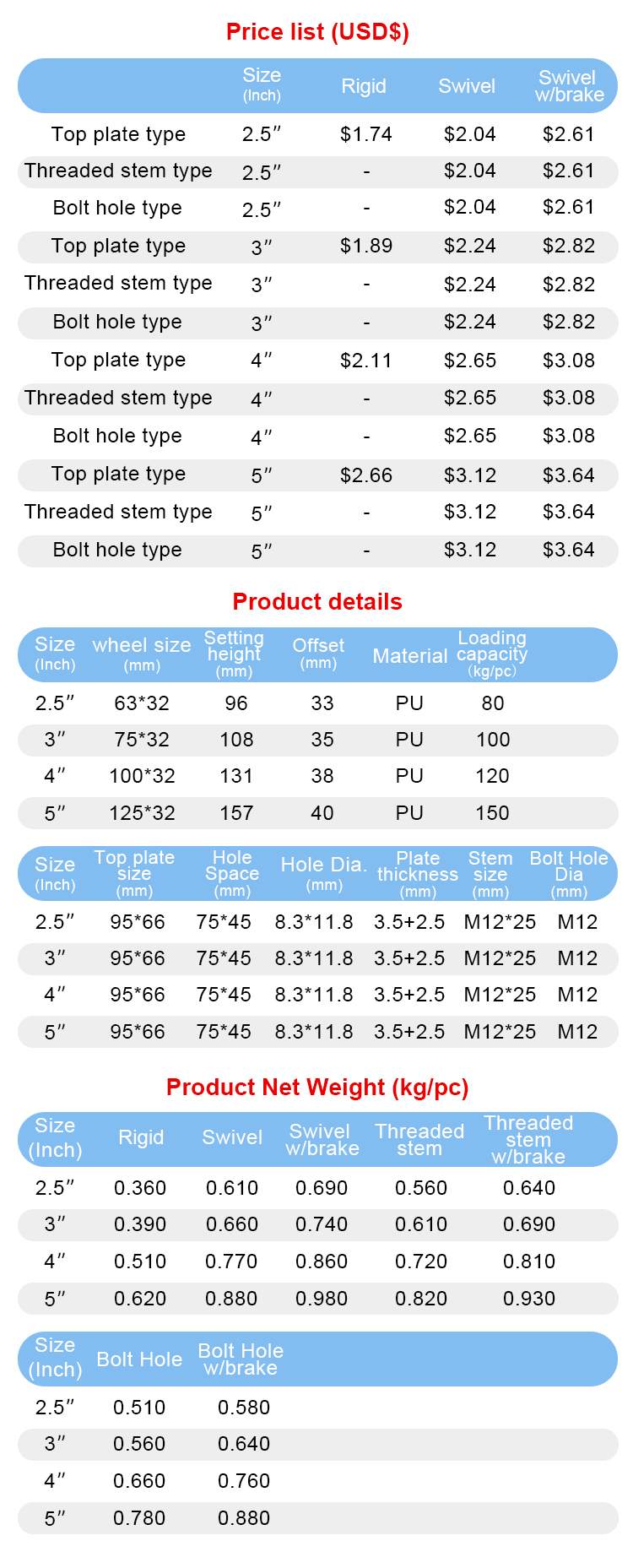 80~150kg loading capacity