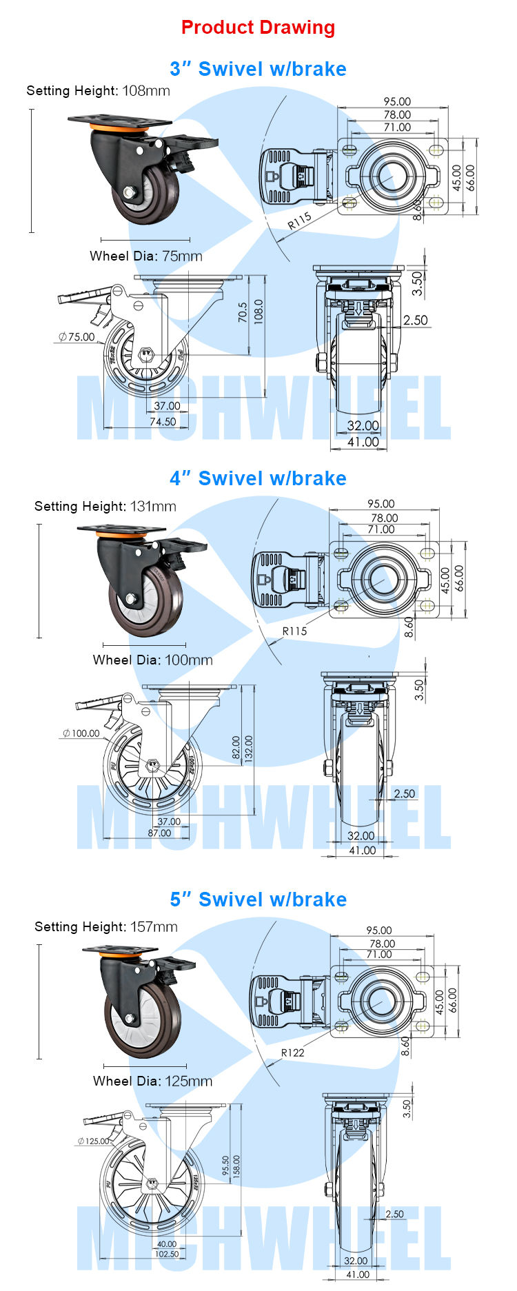 Zinc-plated pressed steel housing with double steel ball raceway in swivel head