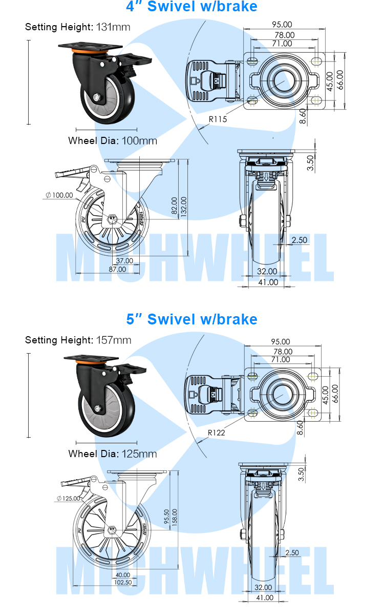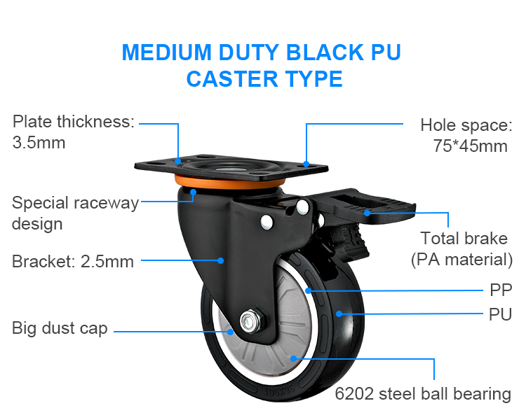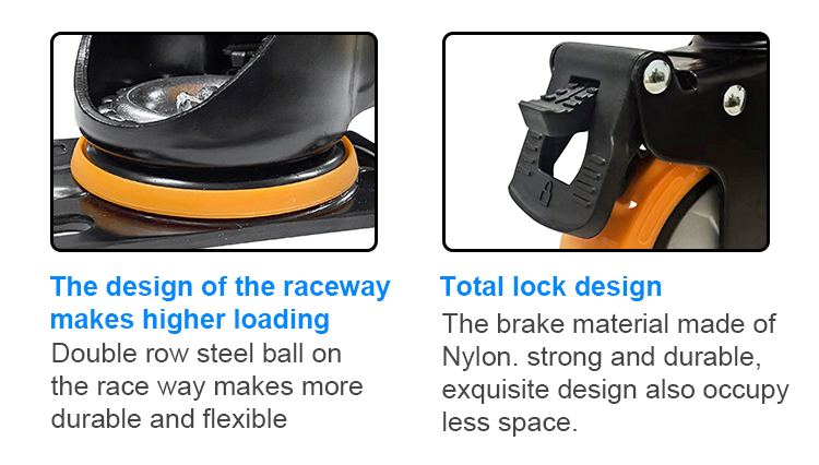 Zinc-plated pressed steel housing with double steel ball raceway in swivel head