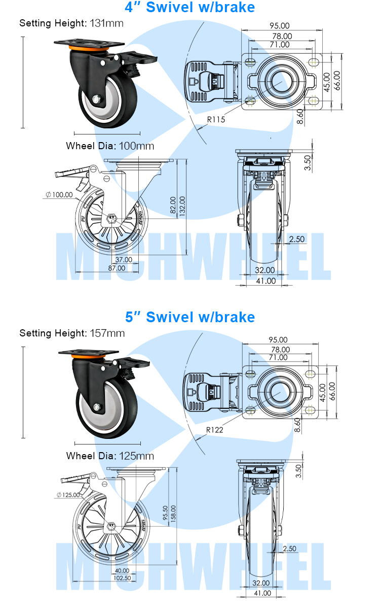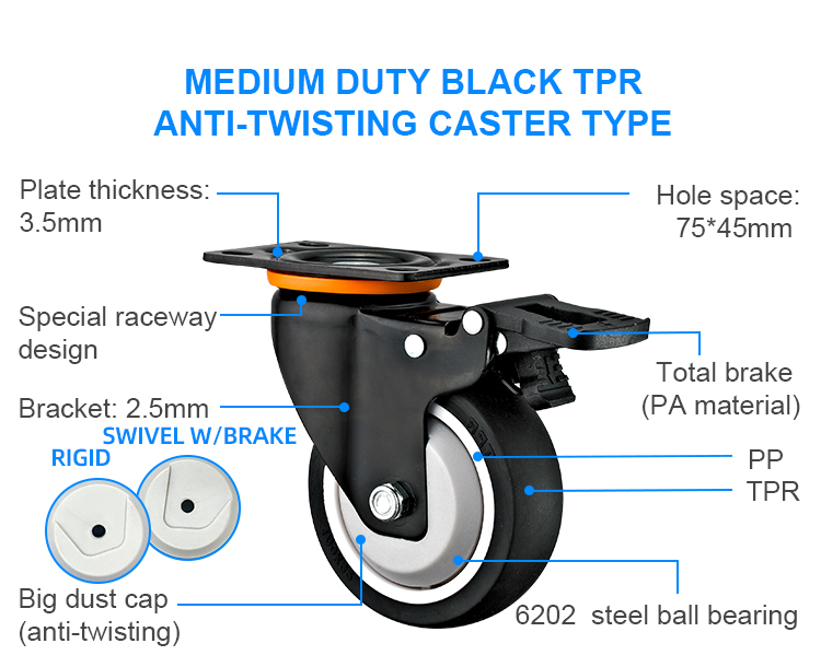 Zinc-plated pressed steel housing with double steel ball raceway in swivel head