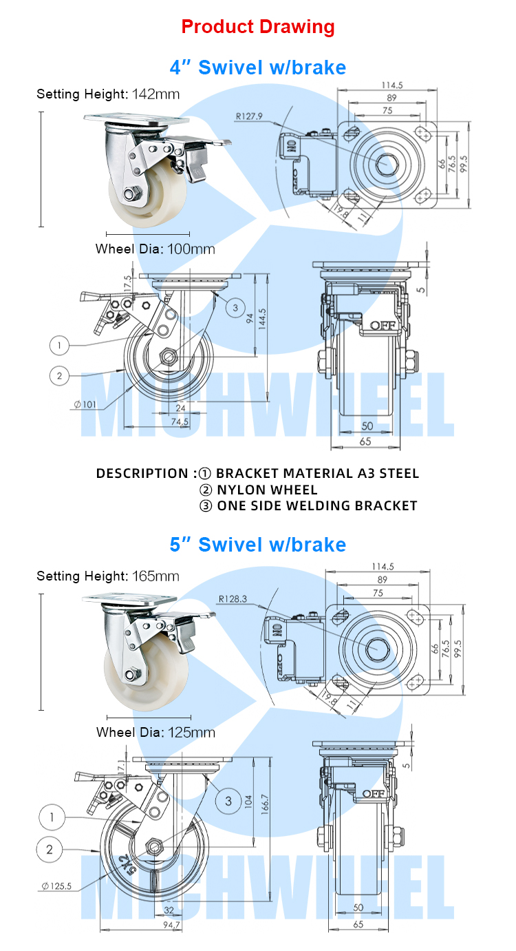 MICHCASTER offers over 30 wheel material, plus the expertise and technology to provide a custom solution for any wheel application, whatever noise reduction to provide peaceful environment, non-marking to keep floors clean, or shock dampening to reduced damage costs, there is always right MICHCASTER wheels supporting your application, you just need to send inquiry with detailed requirement as MICHWHEEL tries our best to strengthen legacy of trust and innovation in everything everywhere to assure MICHCASTER wheels are of the utmost quality.