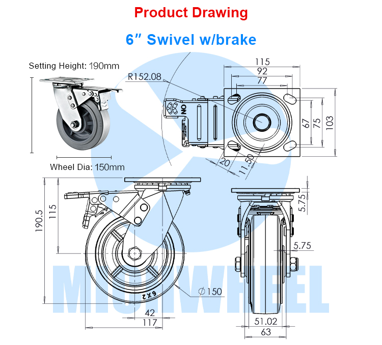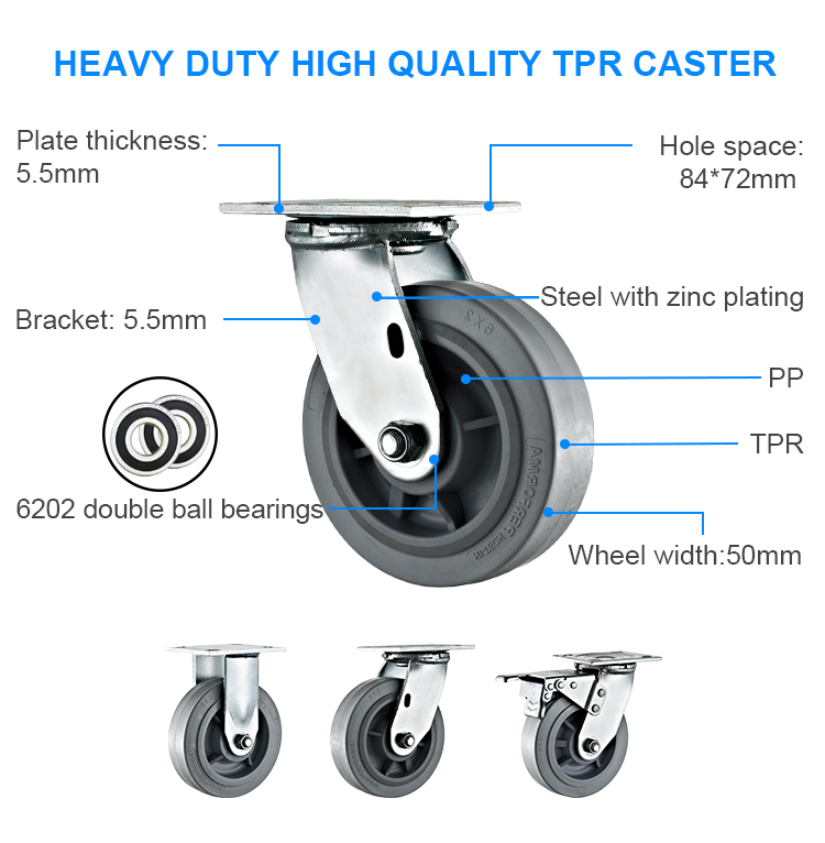 Zinc-plated pressed steel housing with double steel ball raceway in swivel head
