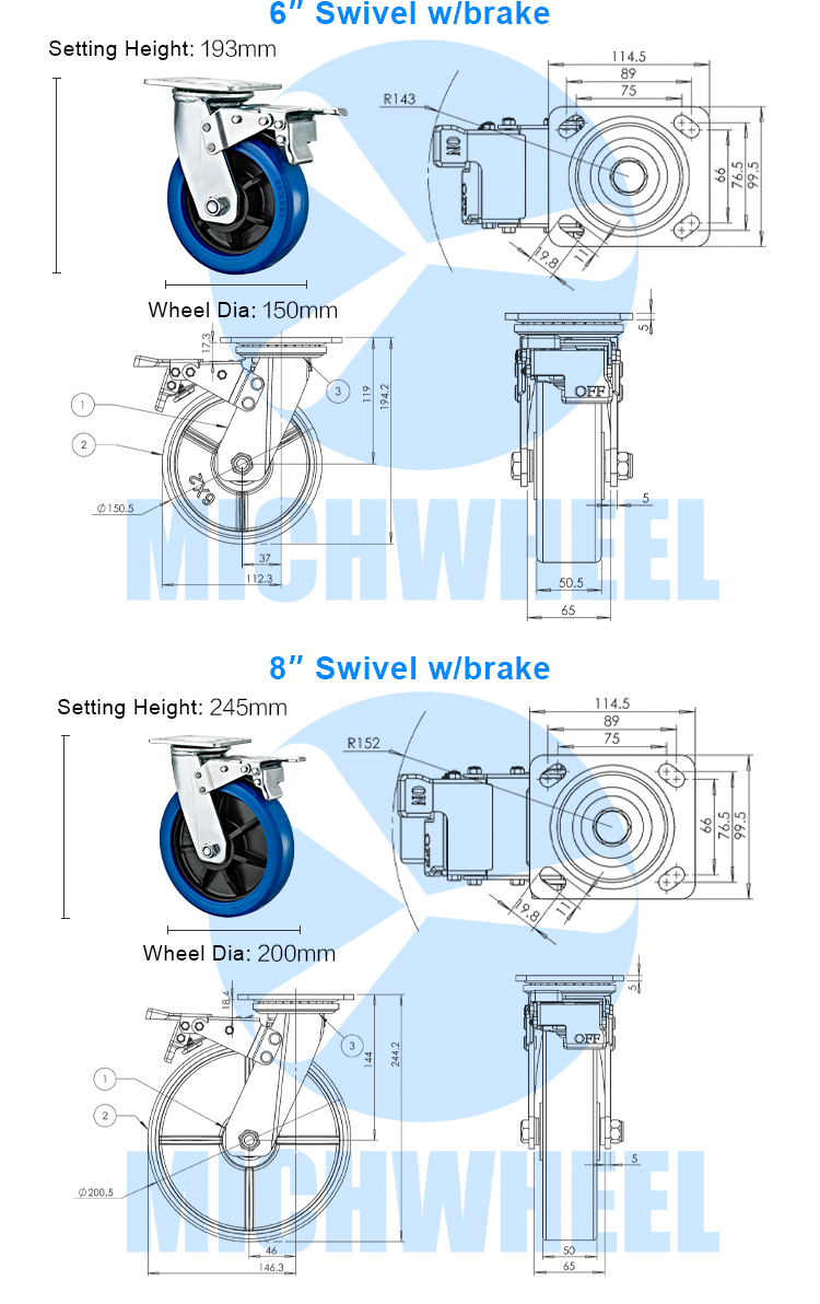 Zinc-plated pressed steel housing with double steel ball raceway in swivel head