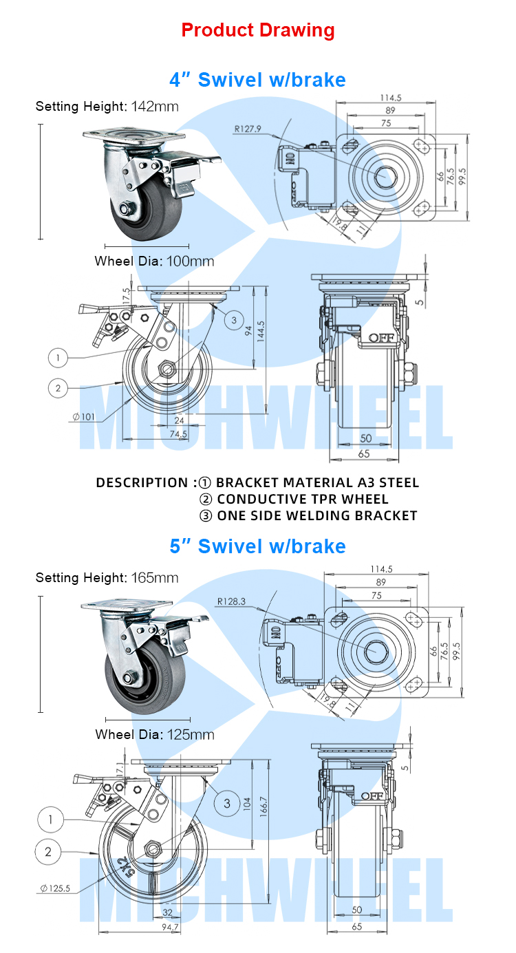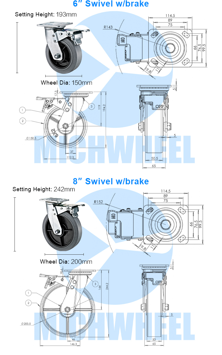 Zinc-plated pressed steel housing with double steel ball raceway in swivel head