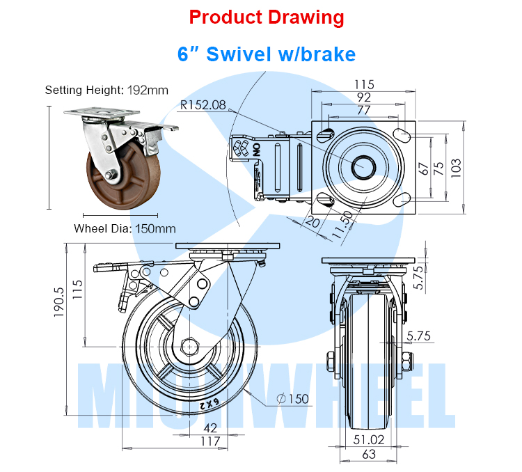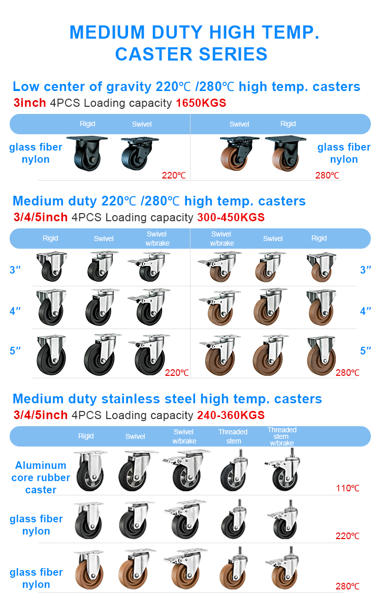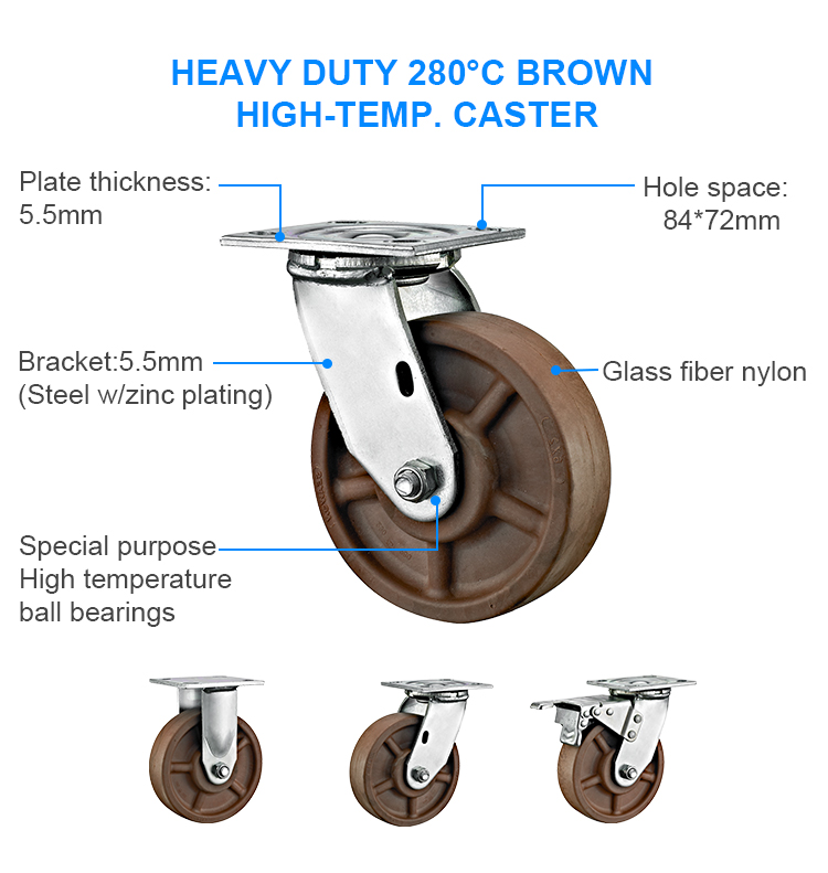 Heavy duty 280℃ brown high-temp.caster