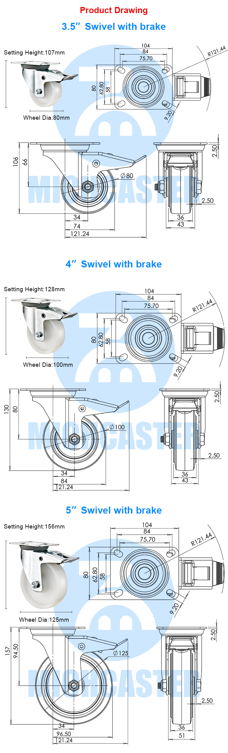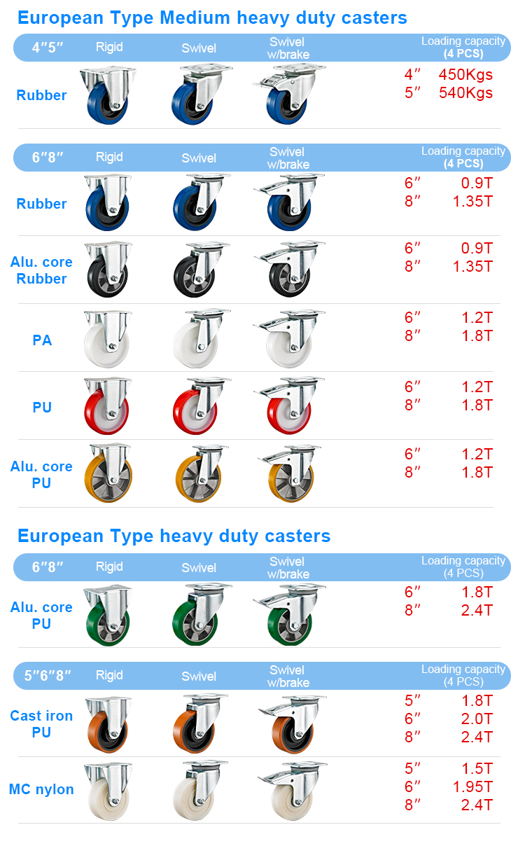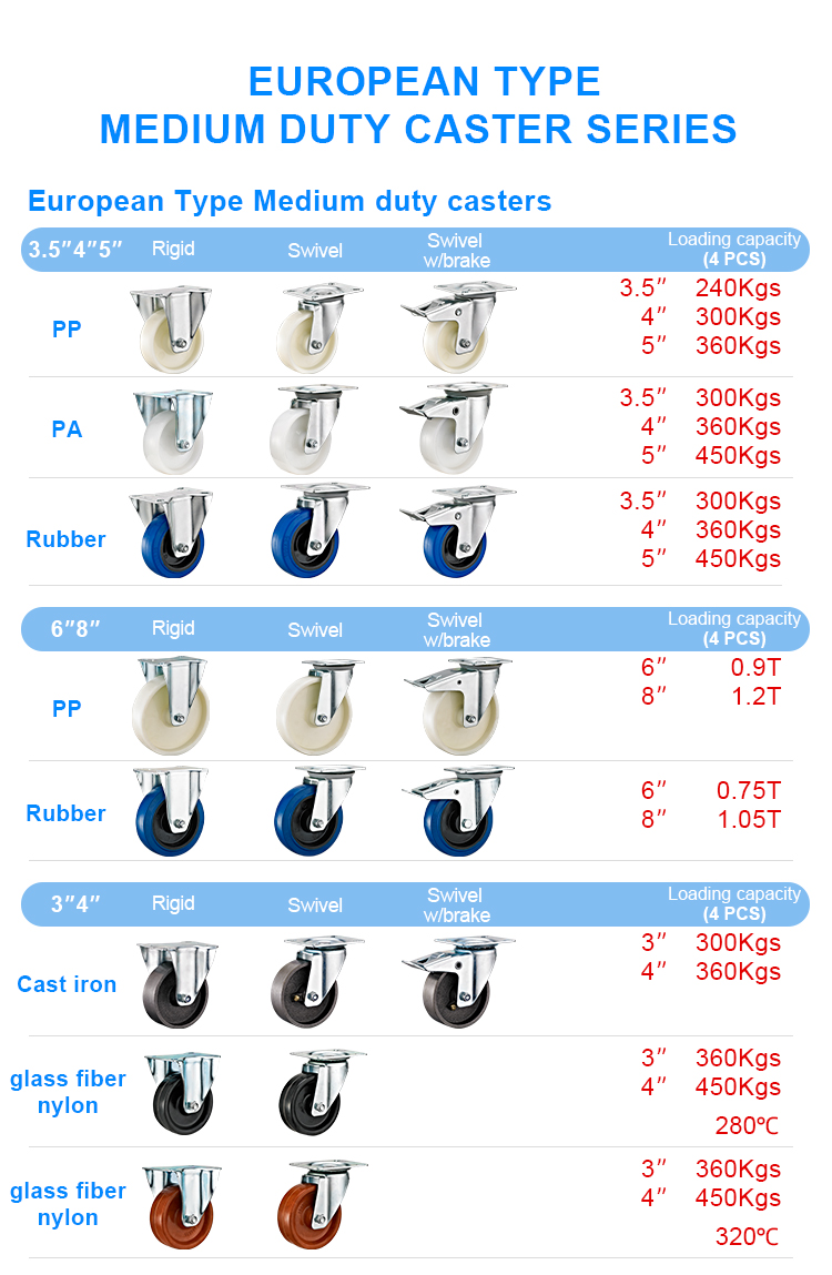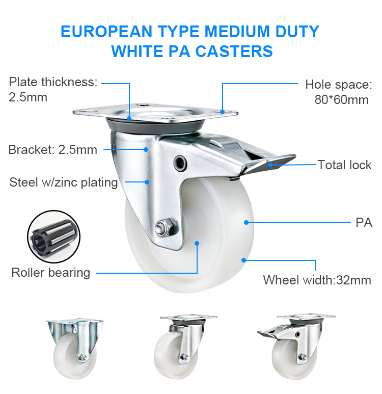 European type medium duty white PA caster