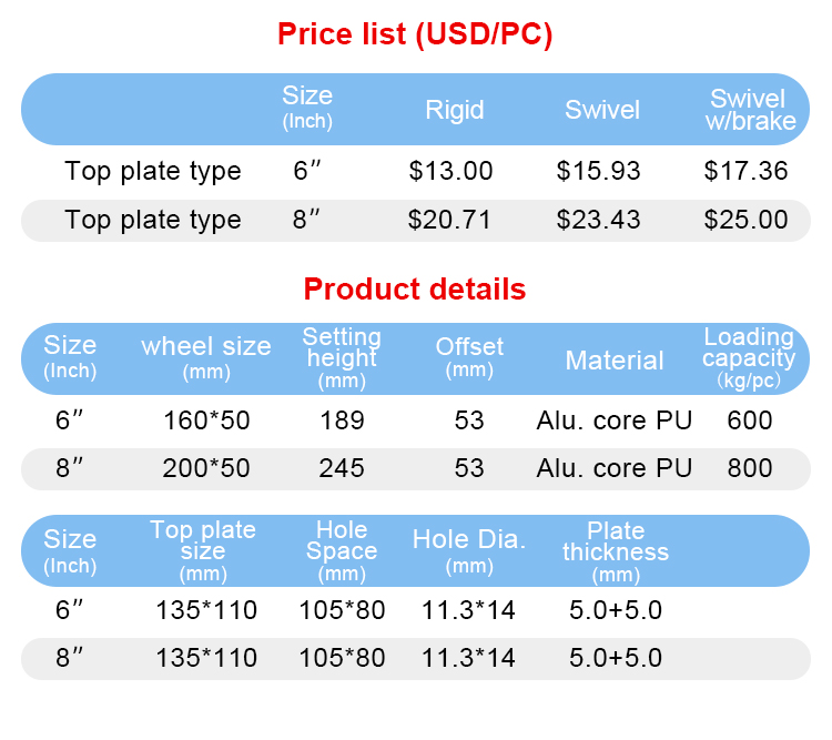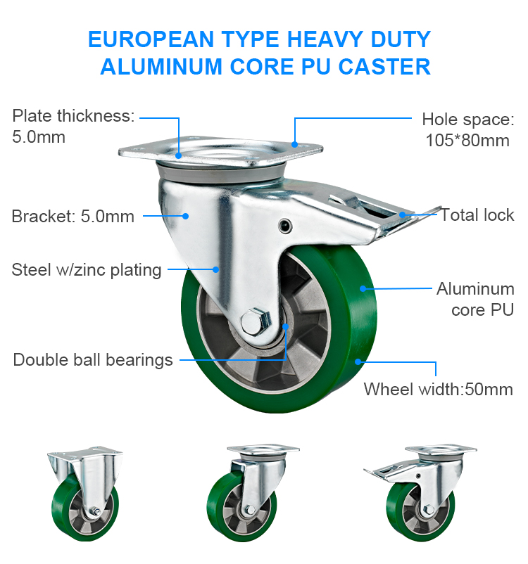 European type heavy duty Alu. core PU caster