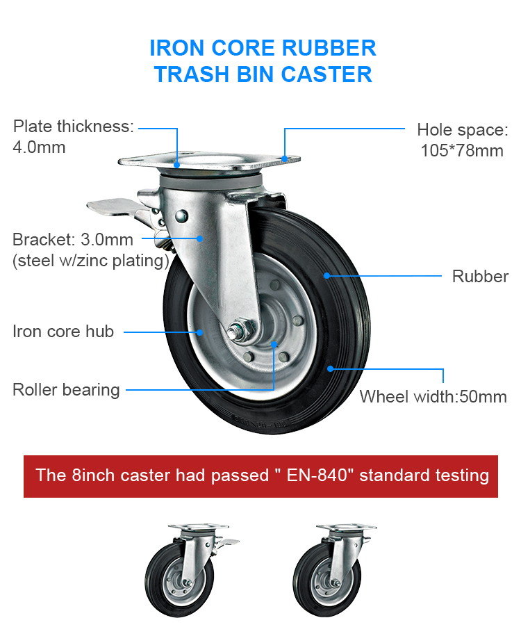 Zinc-plated pressed steel housing with double steel ball raceway in swivel head