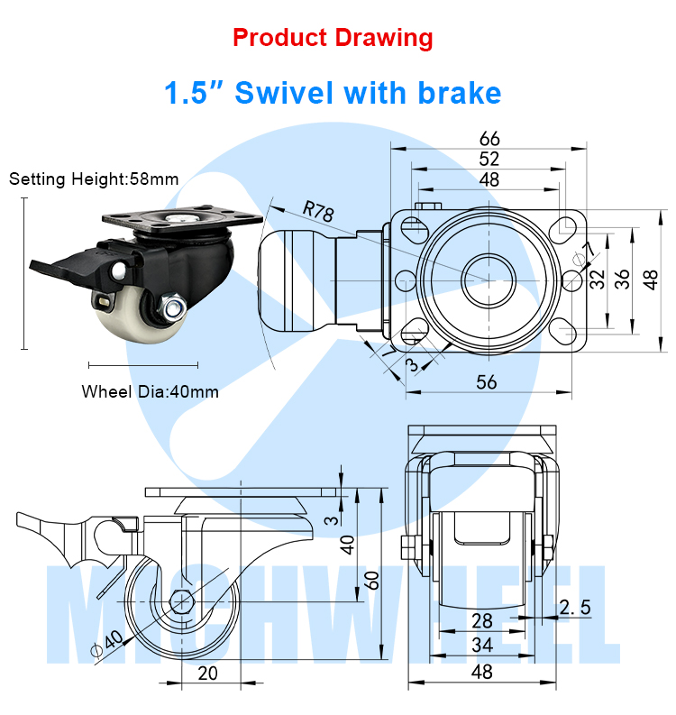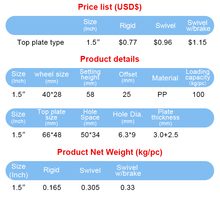 Light duty Low center of gravity white PP caster(Type B)