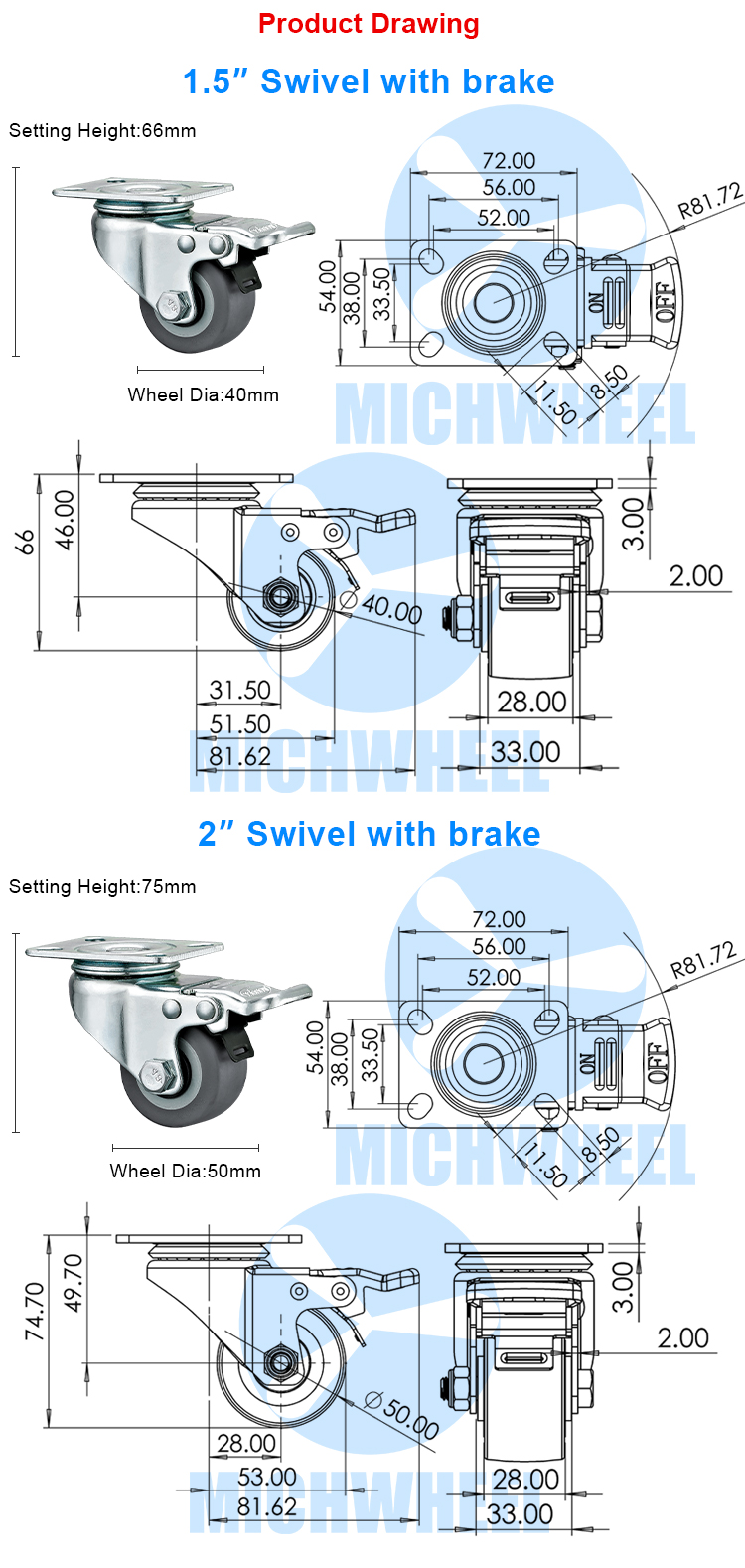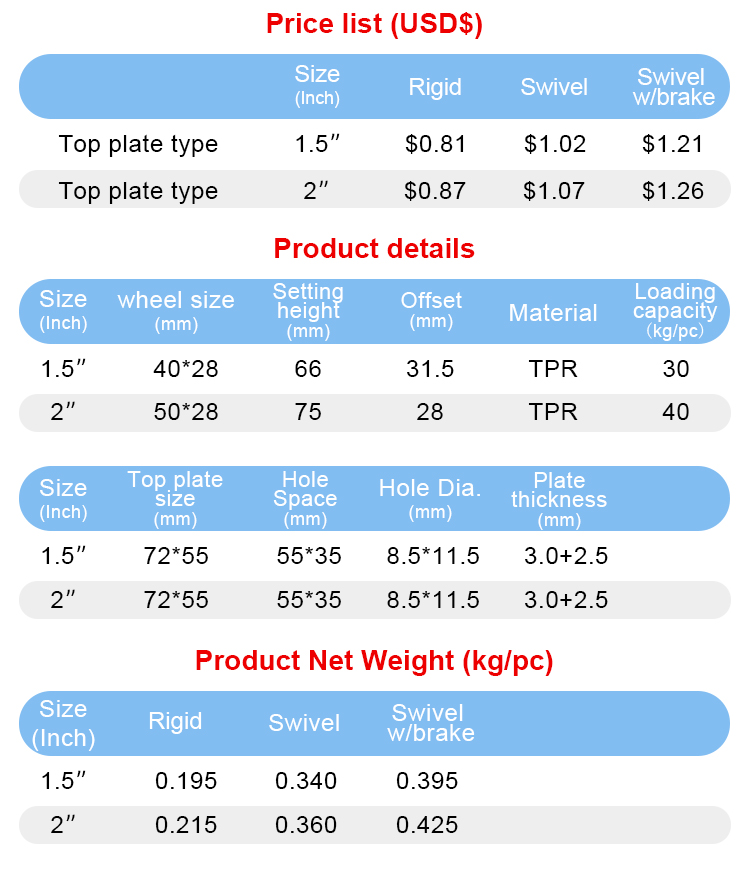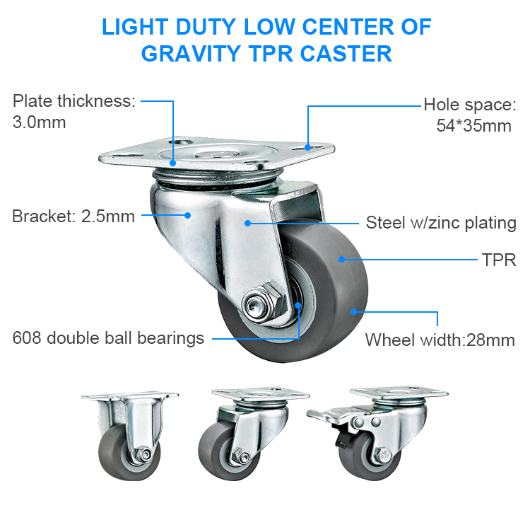 Light duty Low center of gravity TPR caster