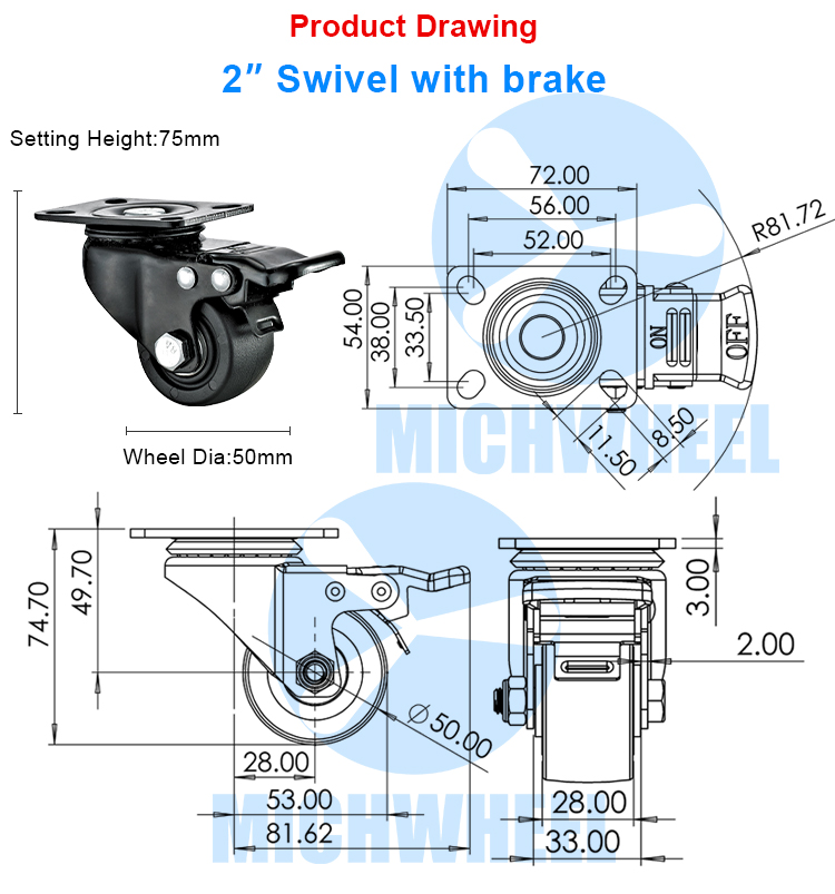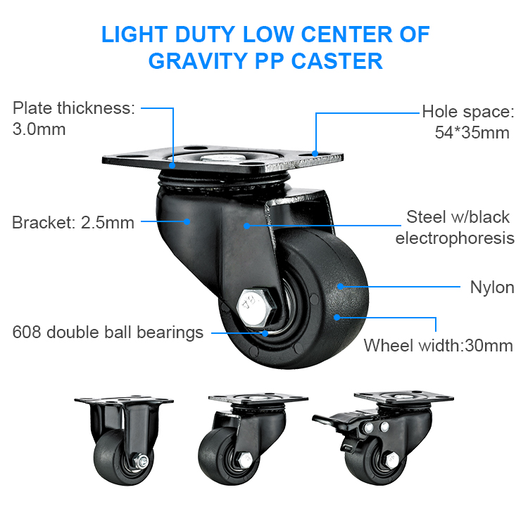 Zinc-plated pressed steel housing with double steel ball raceway in swivel head