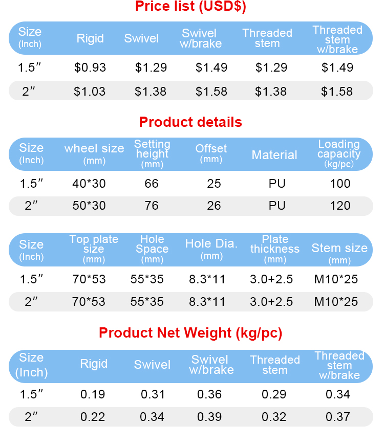 Light duty Low center of gravity black PU caster(Electrophoretic surface)