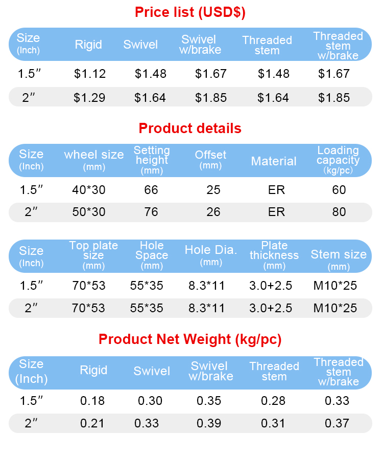 Light duty Low center of gravity brown elatic rubber caster(Electrophoretic surface)