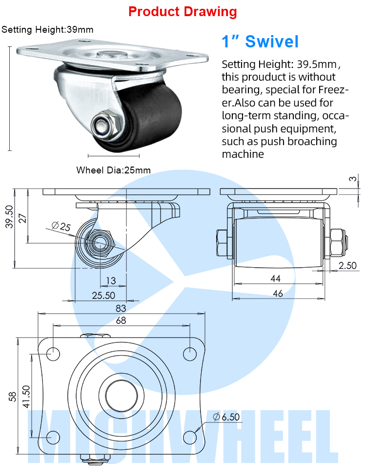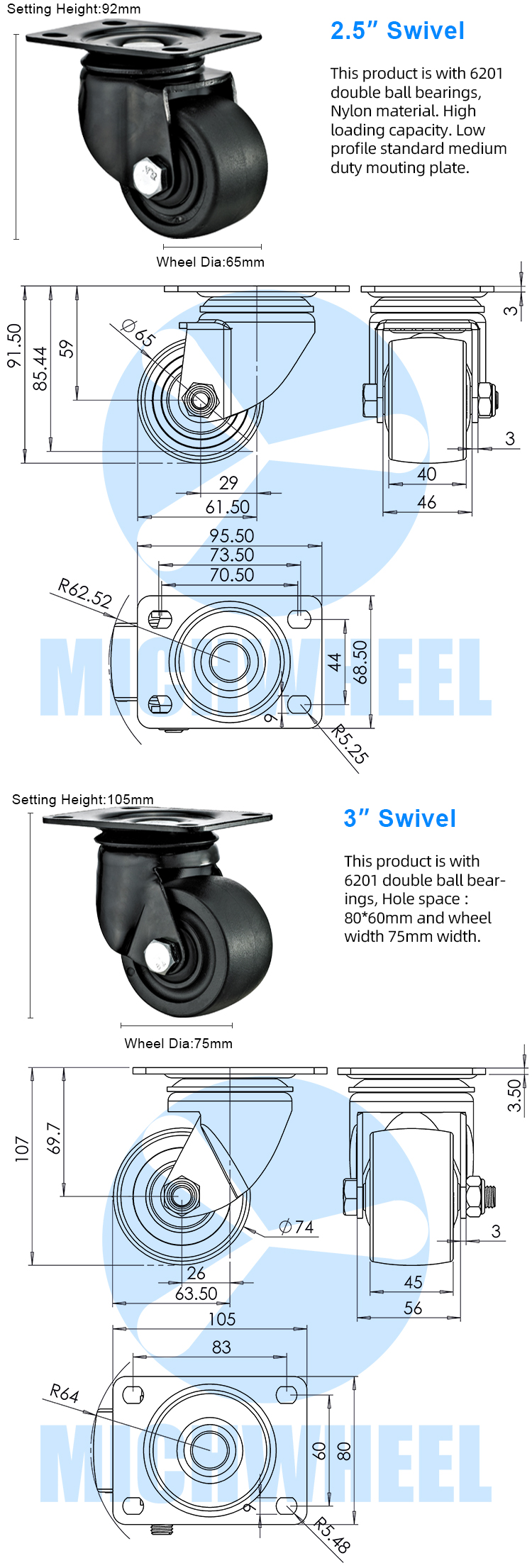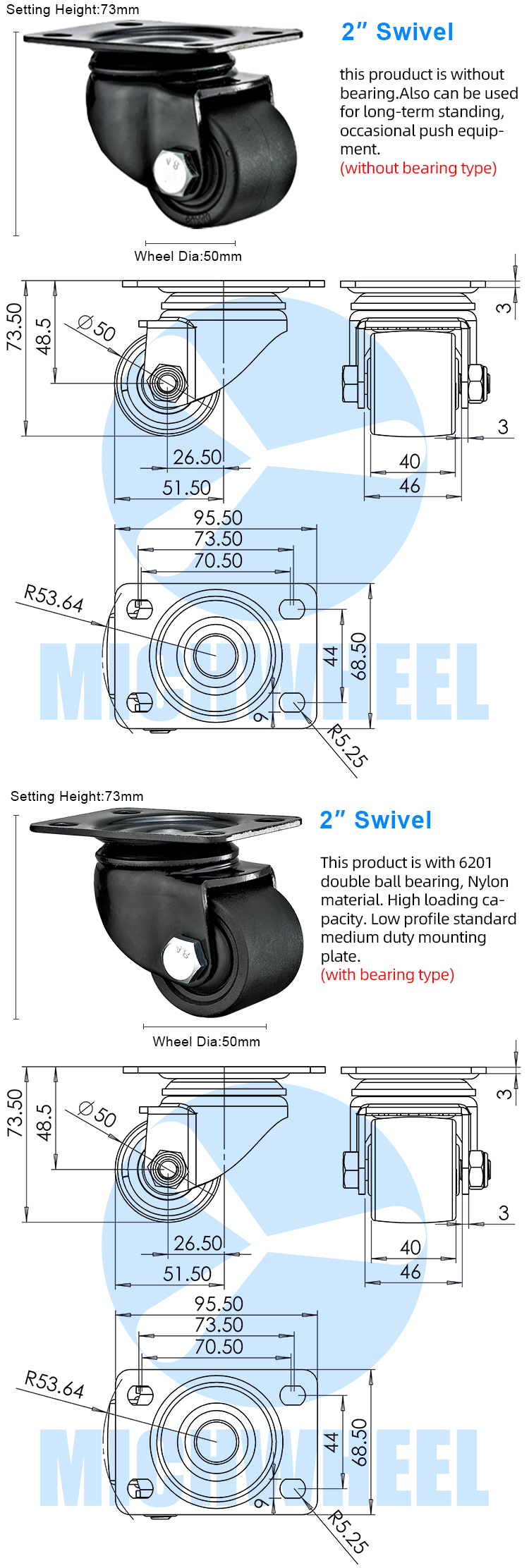 Zinc-plated pressed steel housing with double steel ball raceway in swivel head