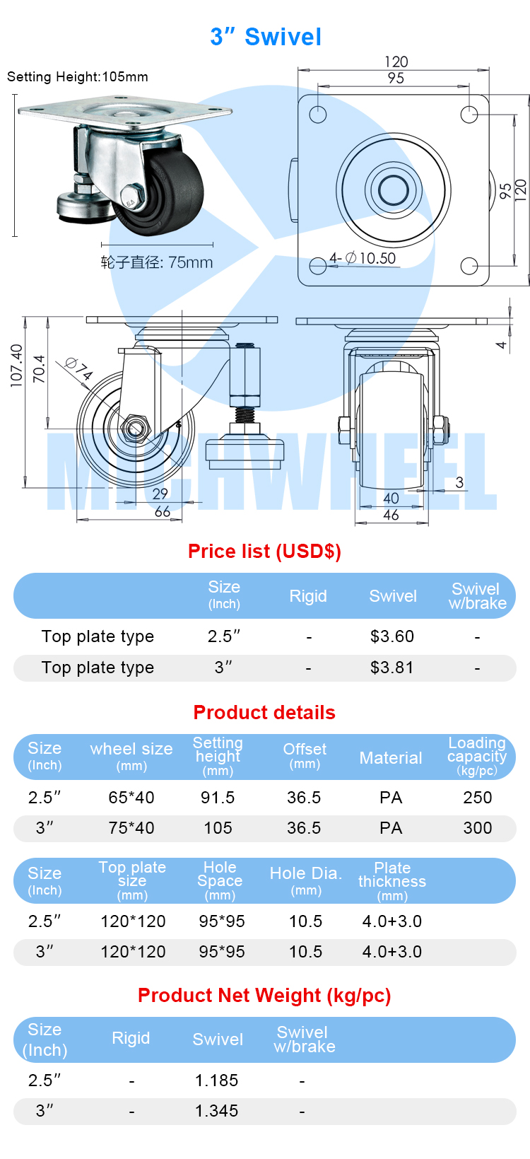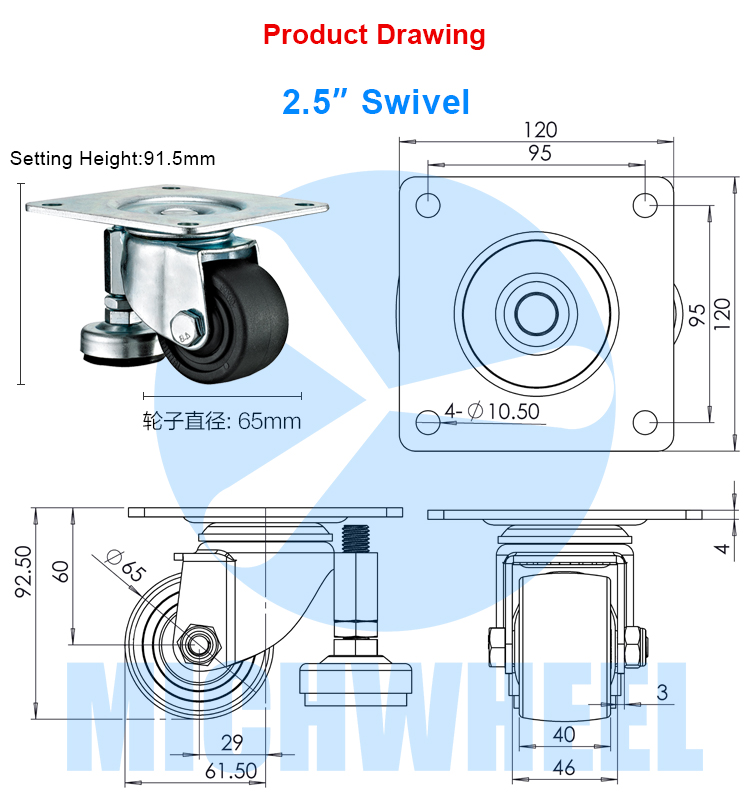 Medium duty Low center of gravity caster(With supporting leg)