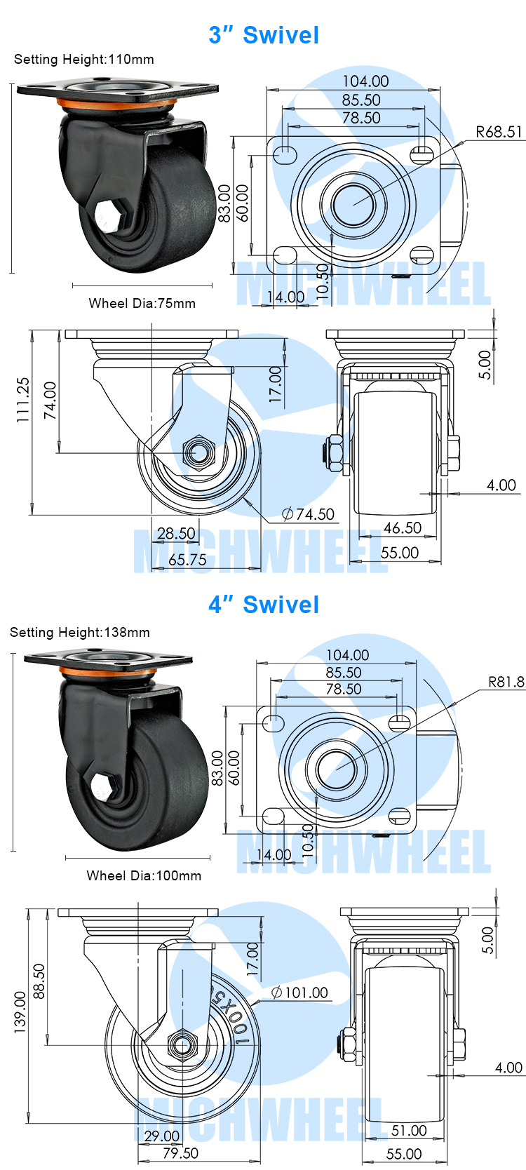 Zinc-plated pressed steel housing with double steel ball raceway in swivel head