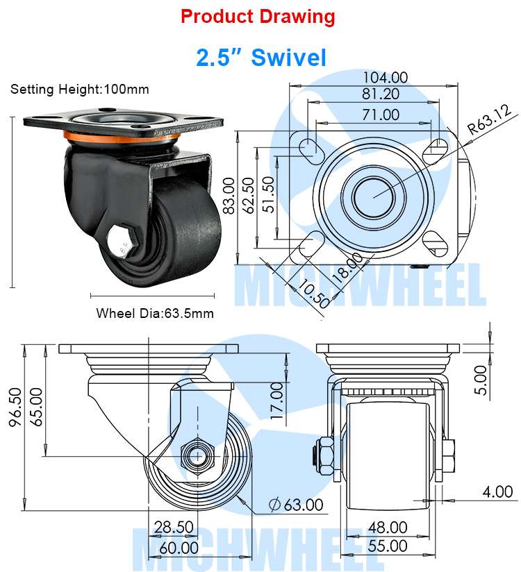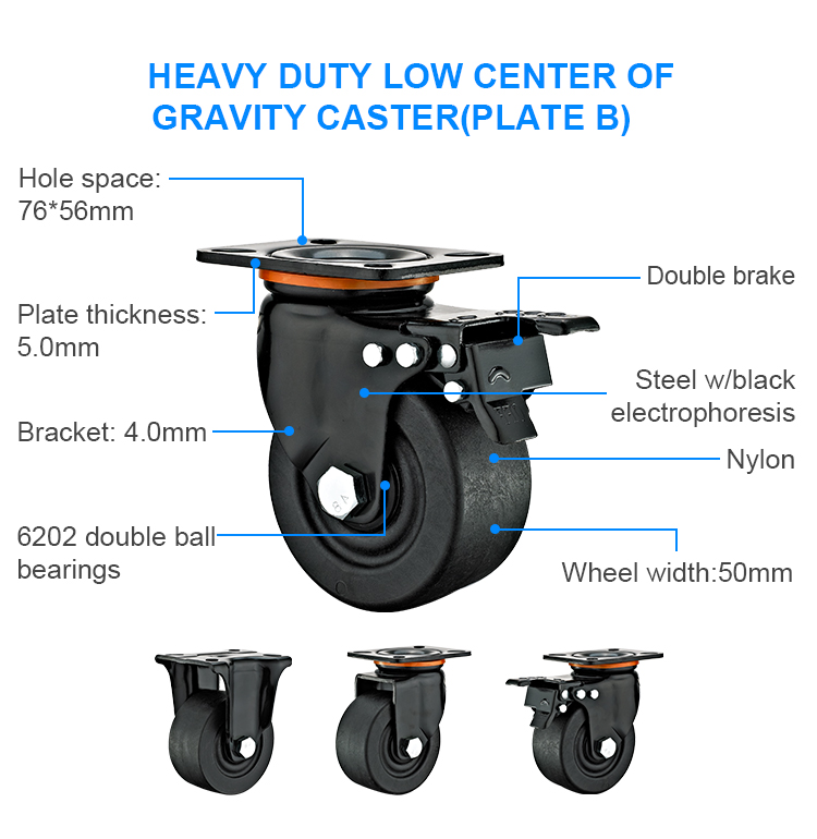 Zinc-plated pressed steel housing with double steel ball raceway in swivel head