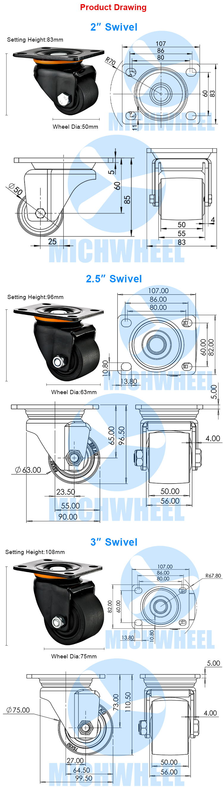 Zinc-plated pressed steel housing with double steel ball raceway in swivel head