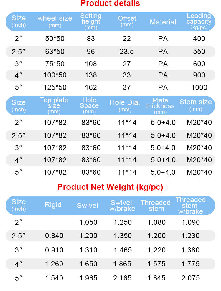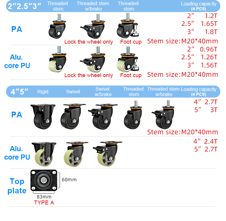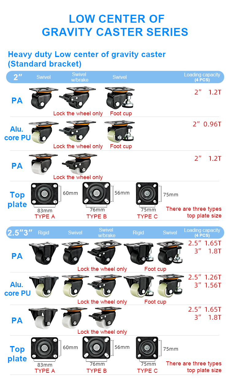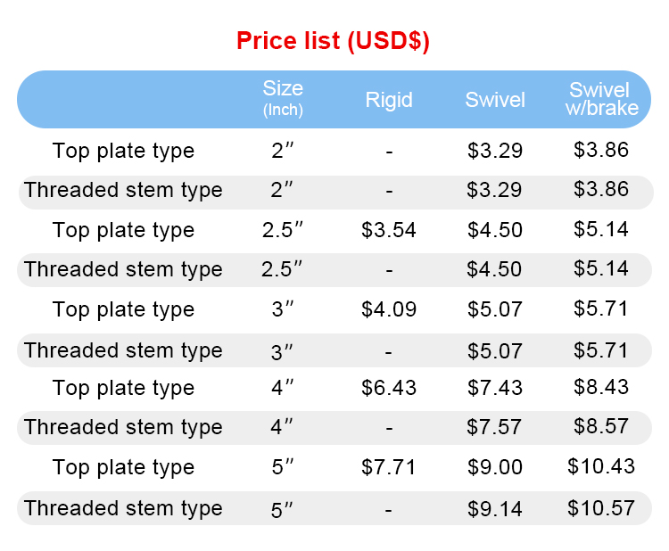 It just shows standard casters in on-line MICHCASTER shop, other wide variety of casters are available in MICHCASTER factory, if you do not find information you need, please contact us directly.