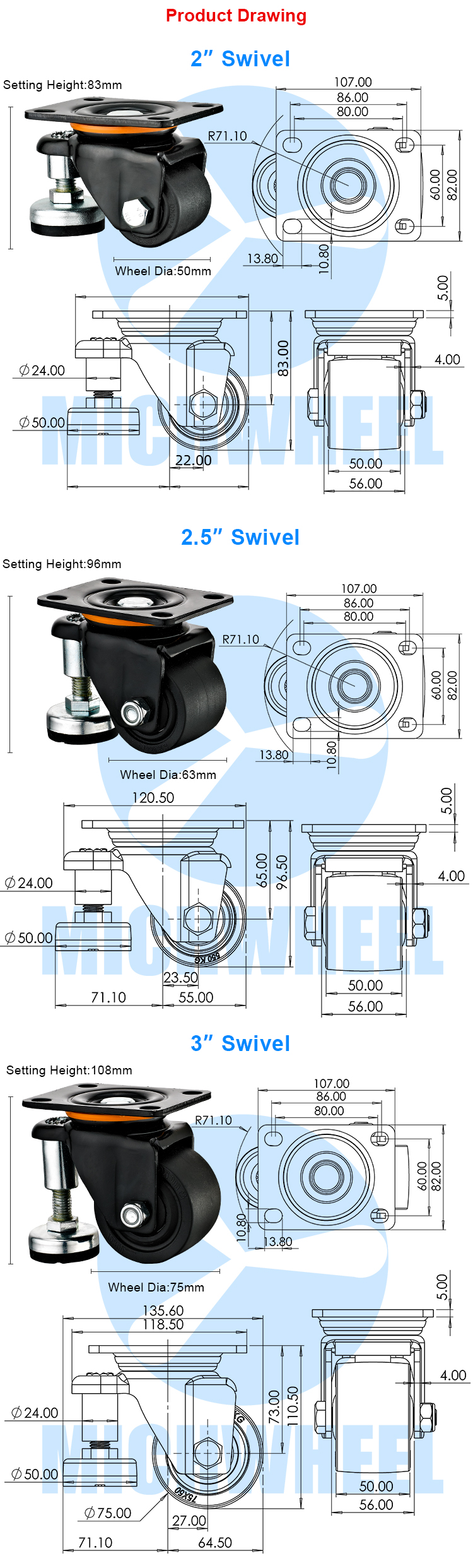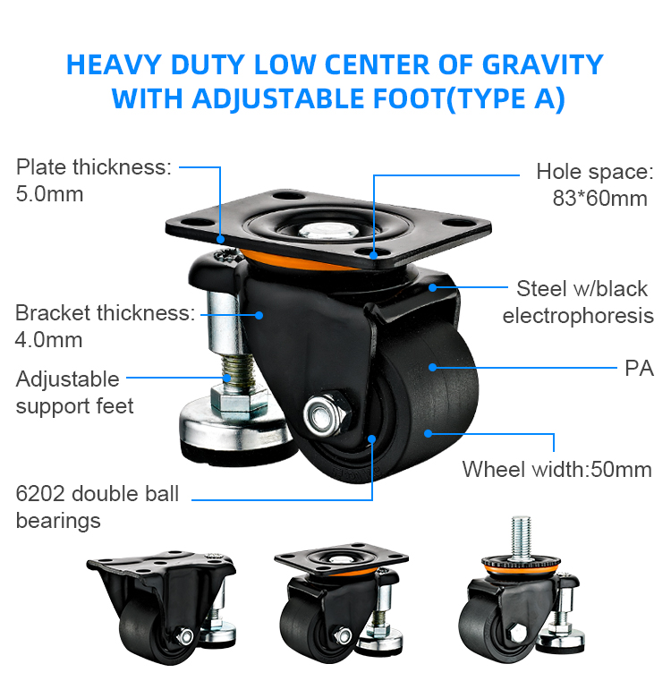 Heavy duty Low center of gravity nylon caster(W/support feet)(Type A)